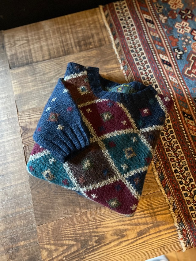 90s shetland hand made knit sweater ハンドニット アーガイル ダイヤ柄 シェットランドニット セーター