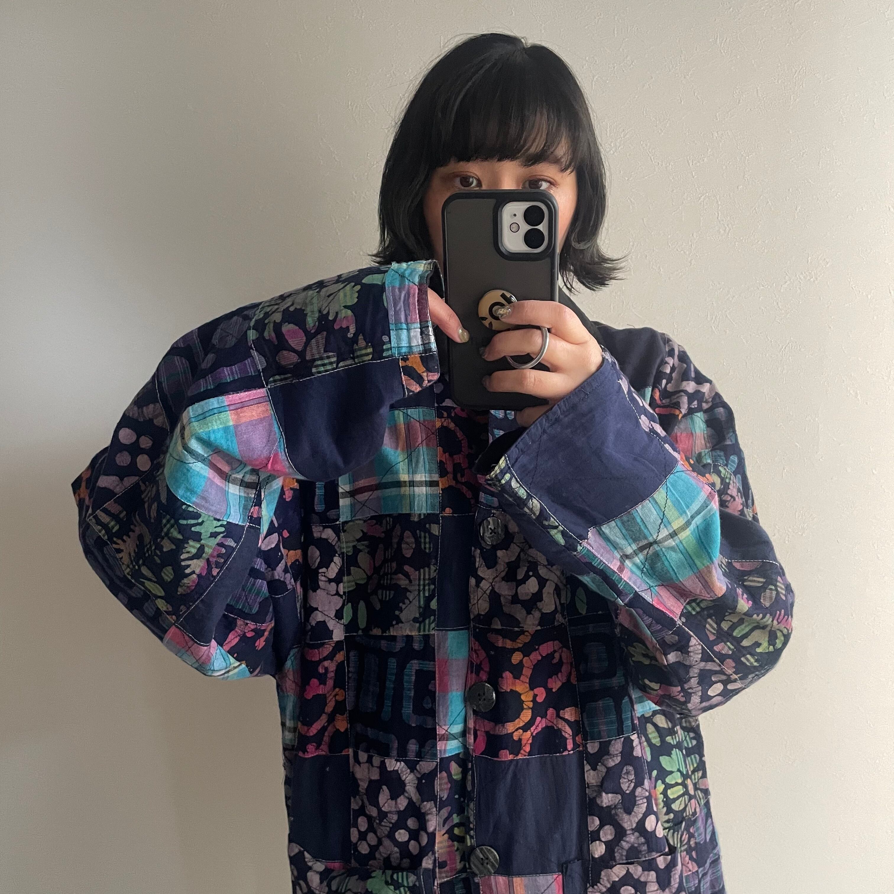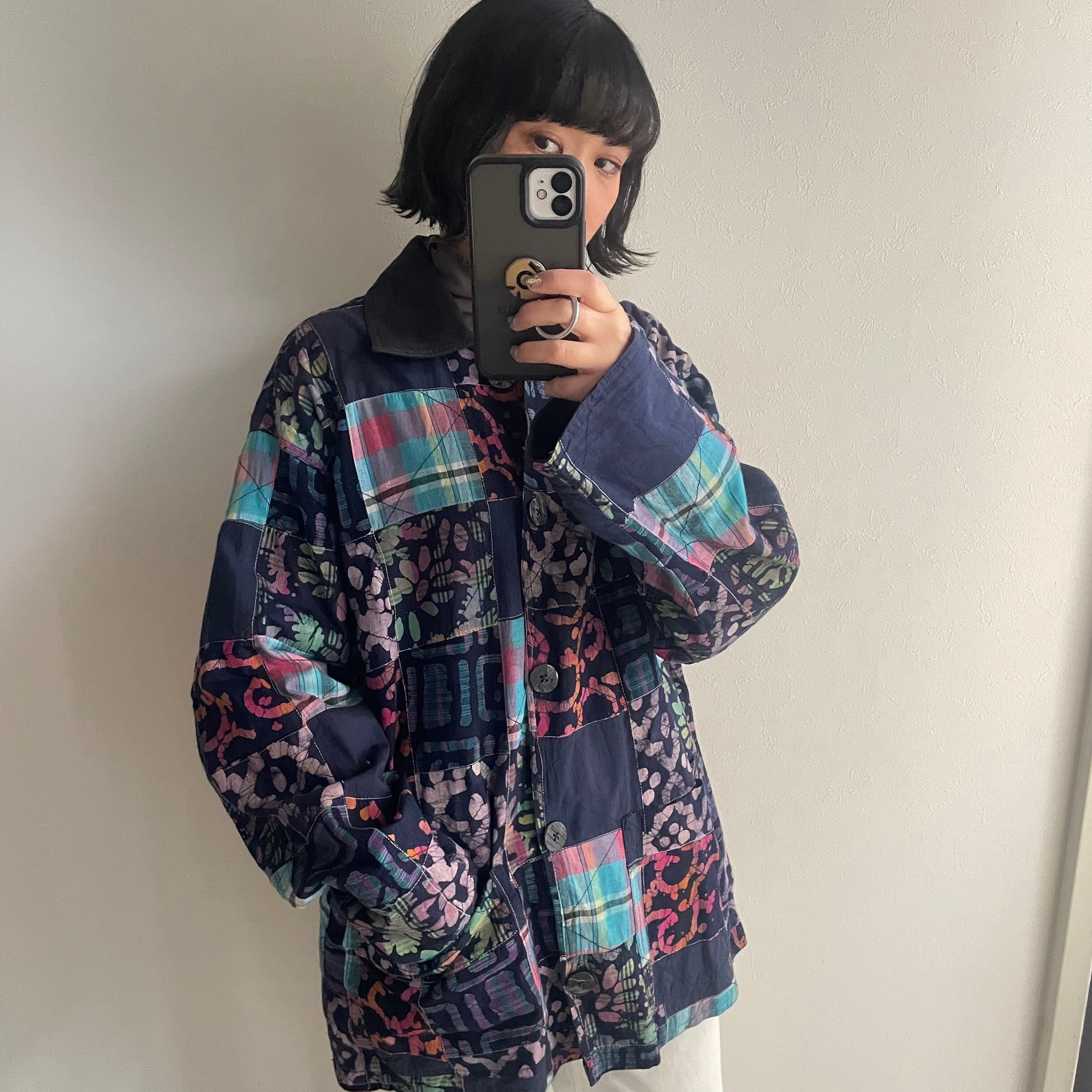 90a made in India patchwork cotton jacket インド製 コットン パッチワーク 襟付きジャケット