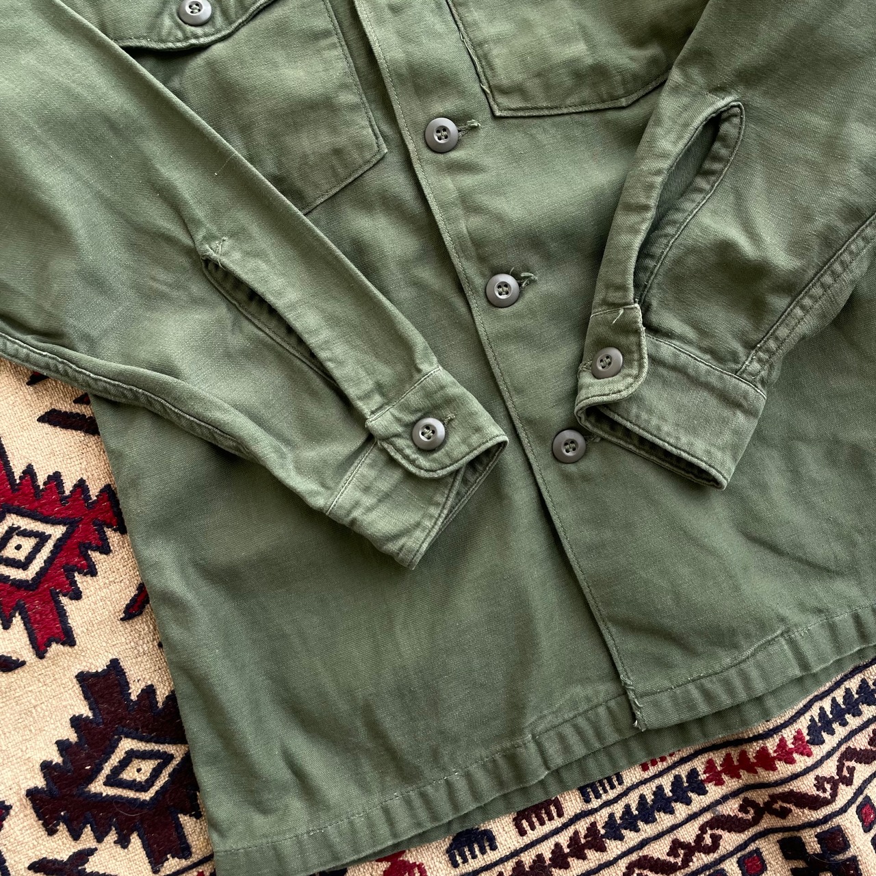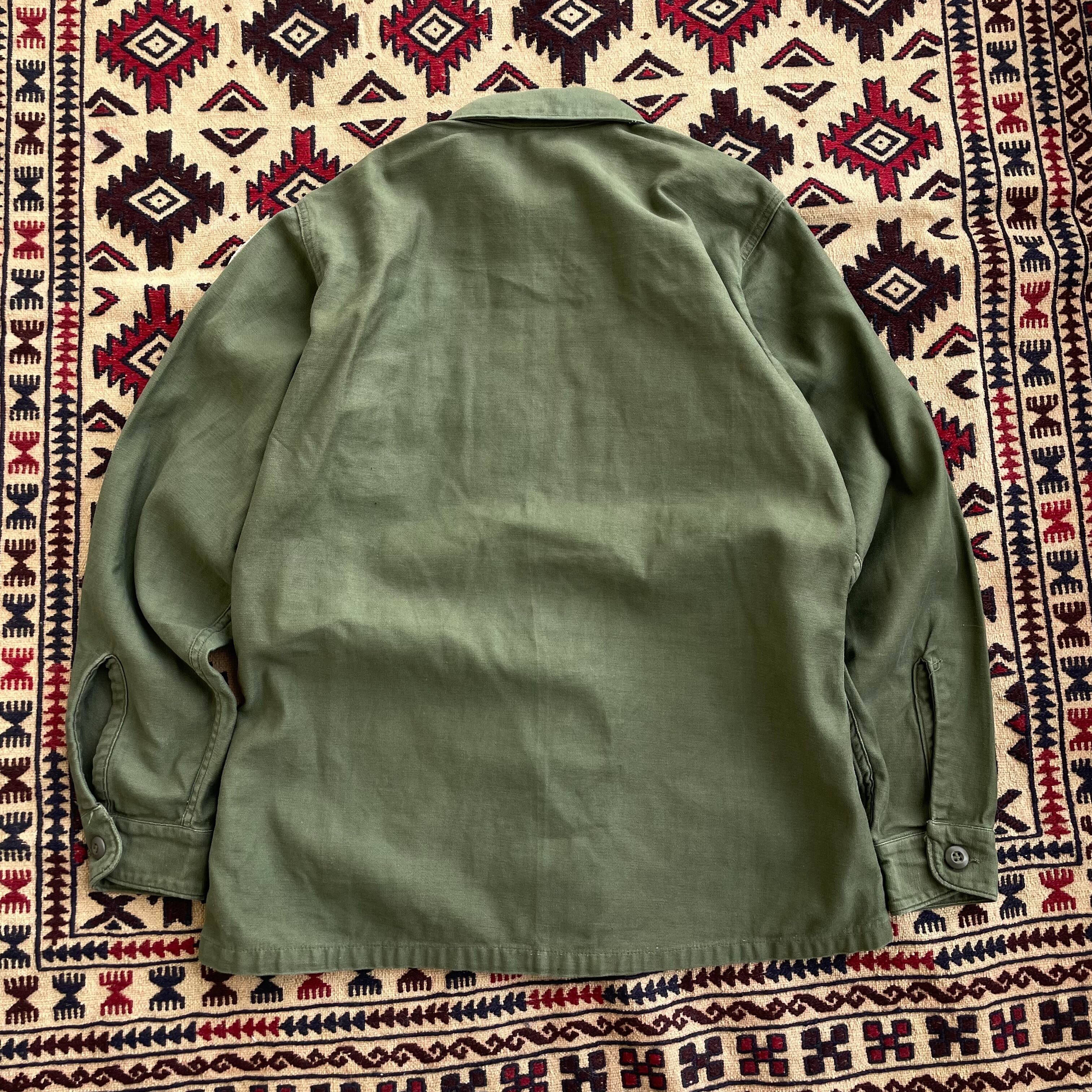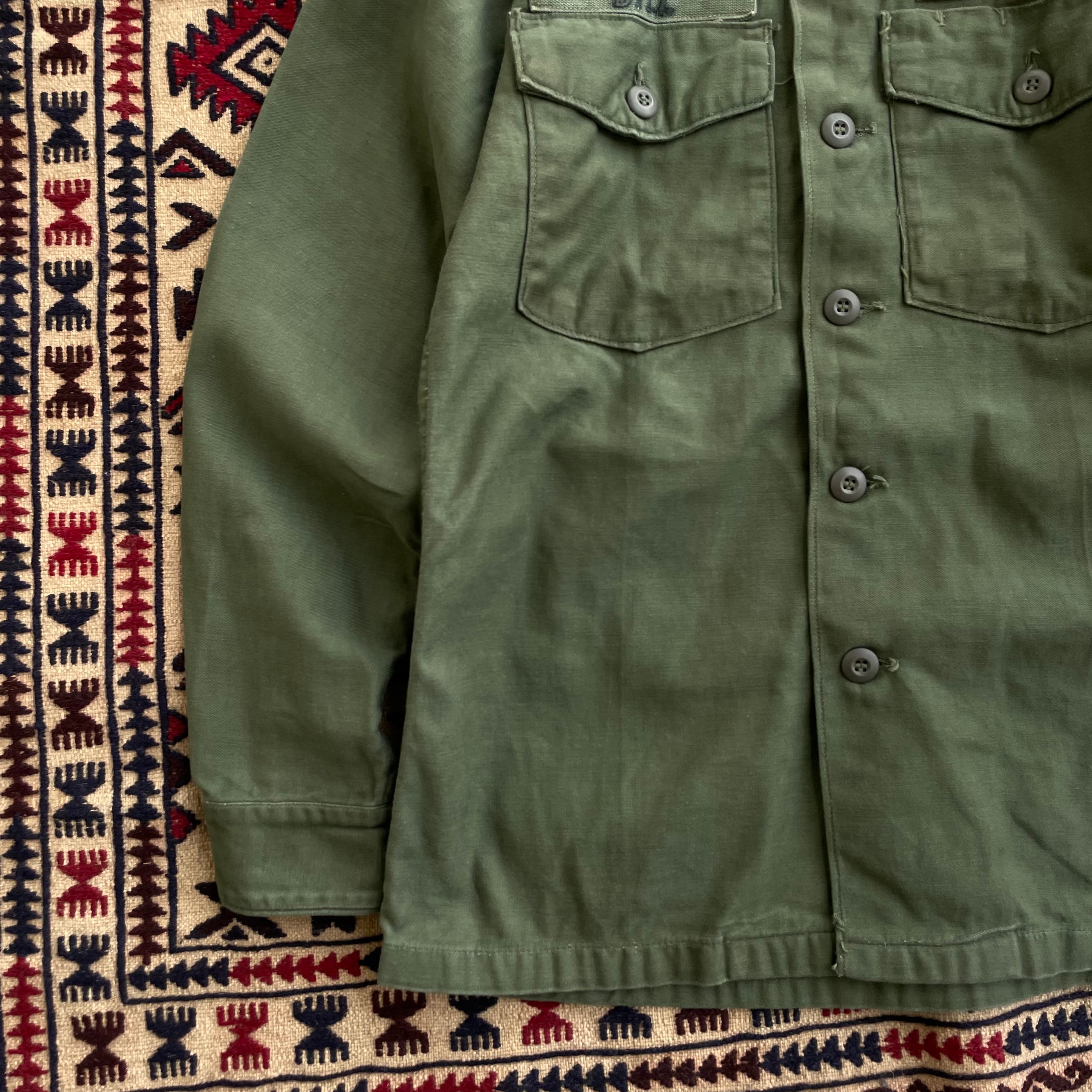 US ARMY 70s OG107 3rd アメリカ軍 実物 コットン サテンユーティリティシャツ OD 15 1/2 X33