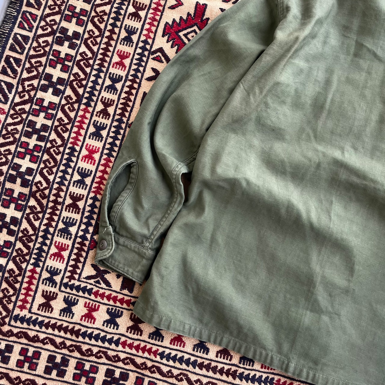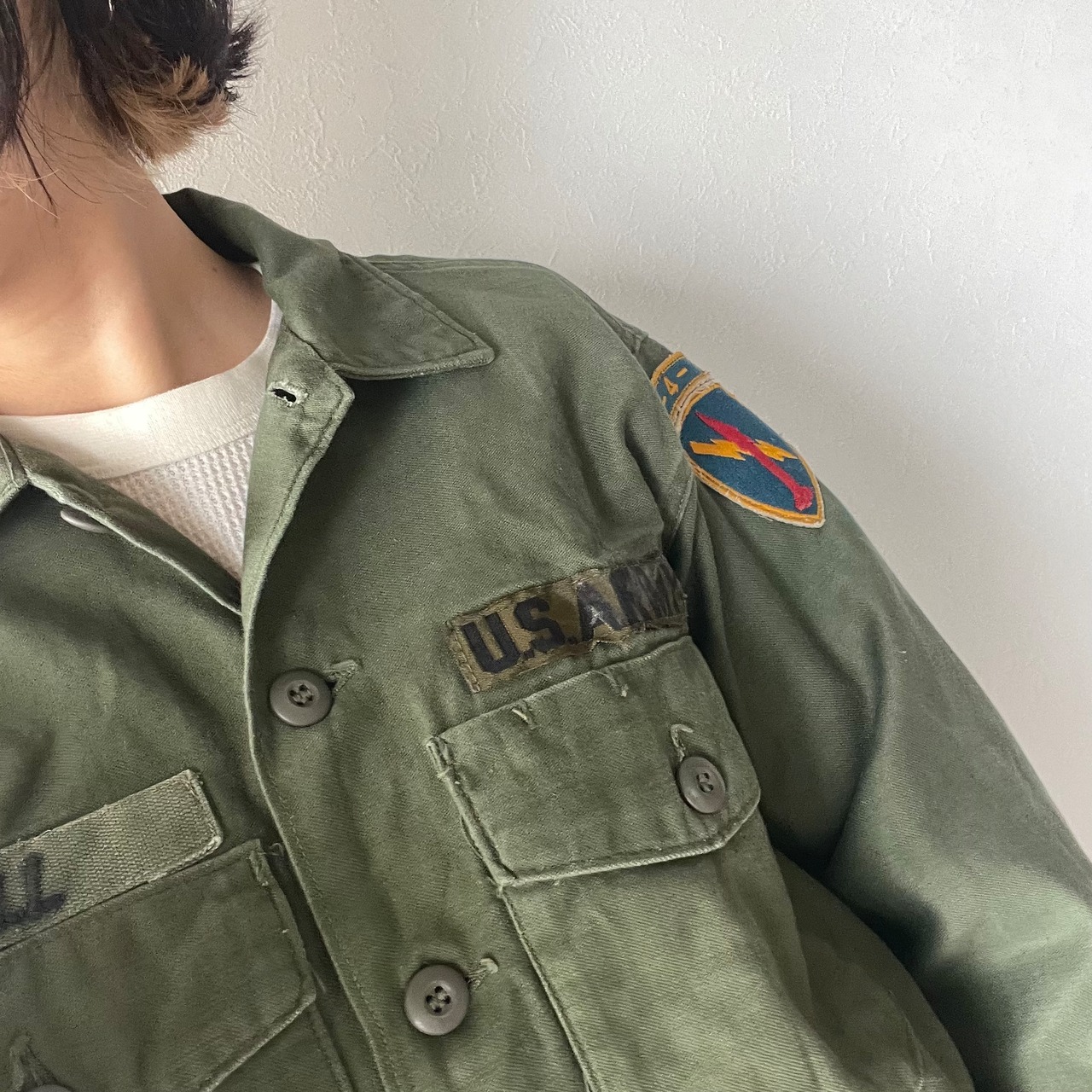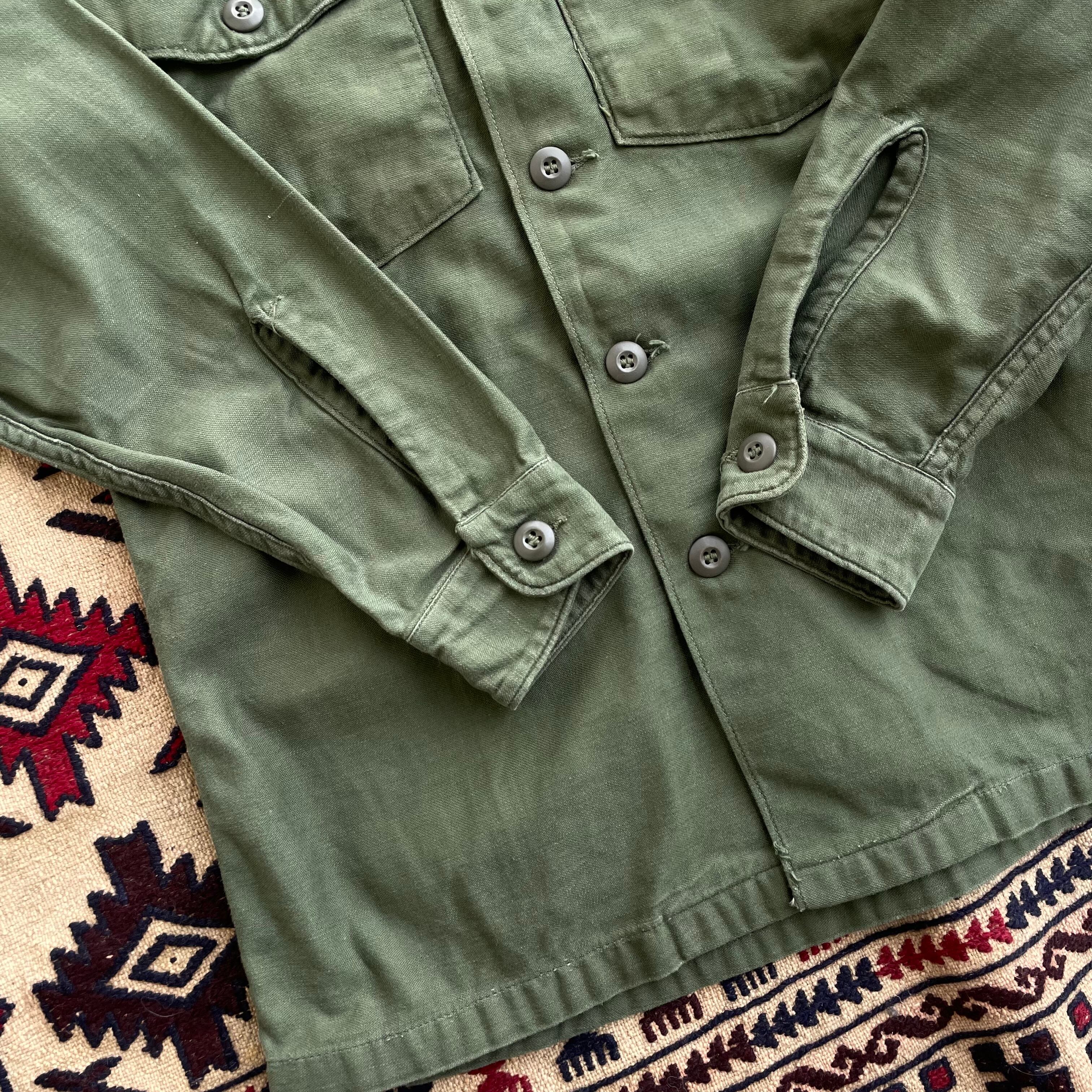 US ARMY 70s OG107 3rd アメリカ軍 実物 コットン サテンユーティリティシャツ OD 15 1/2 X33