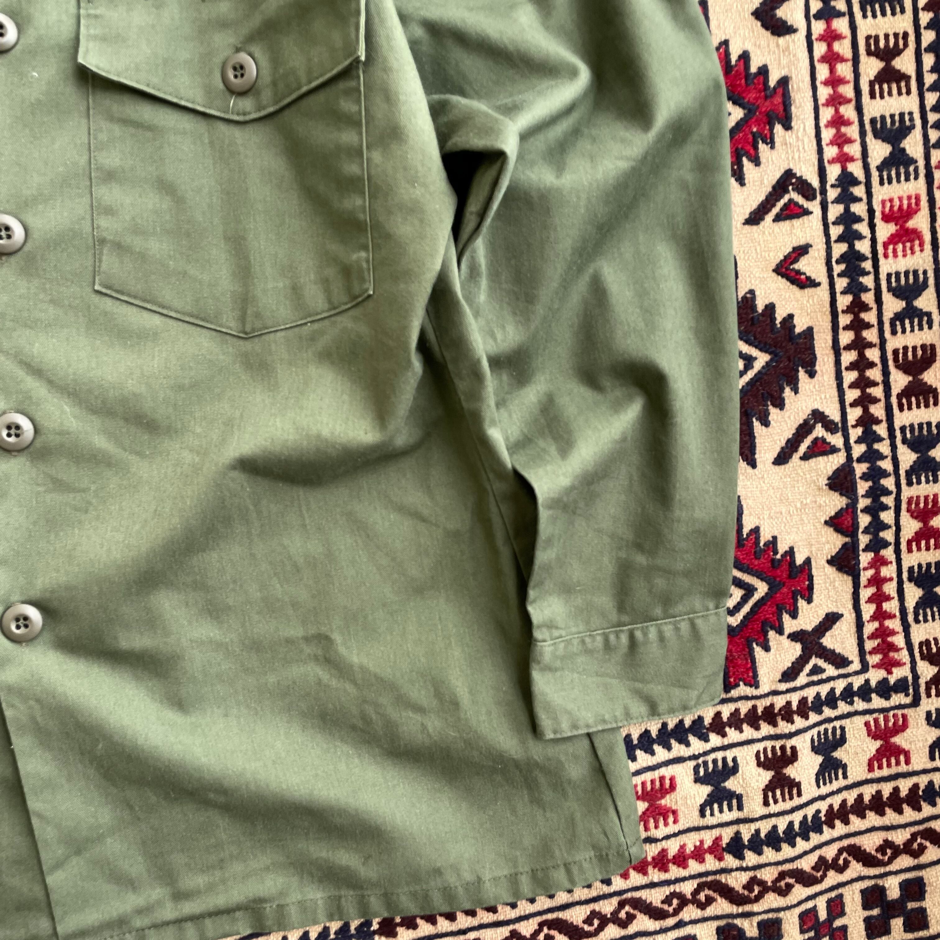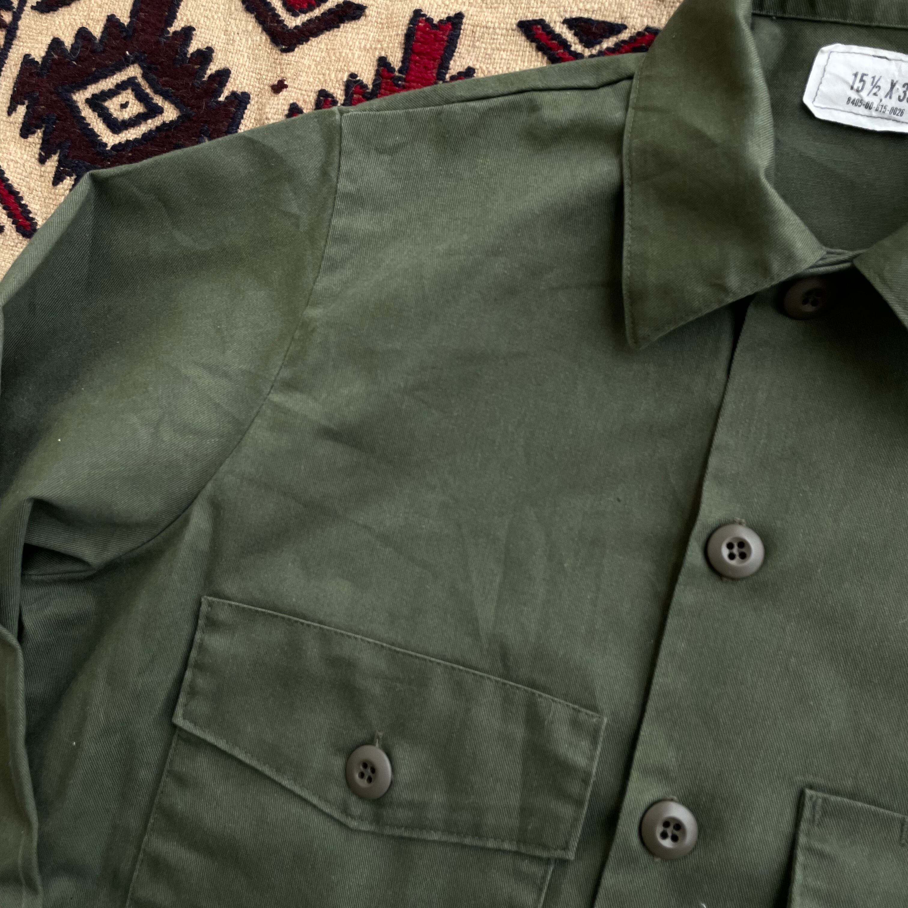 US ARMY 80s OG507 アメリカ軍 実物 コットン サテンユーティリティシャツ OD 15 1/2 X33