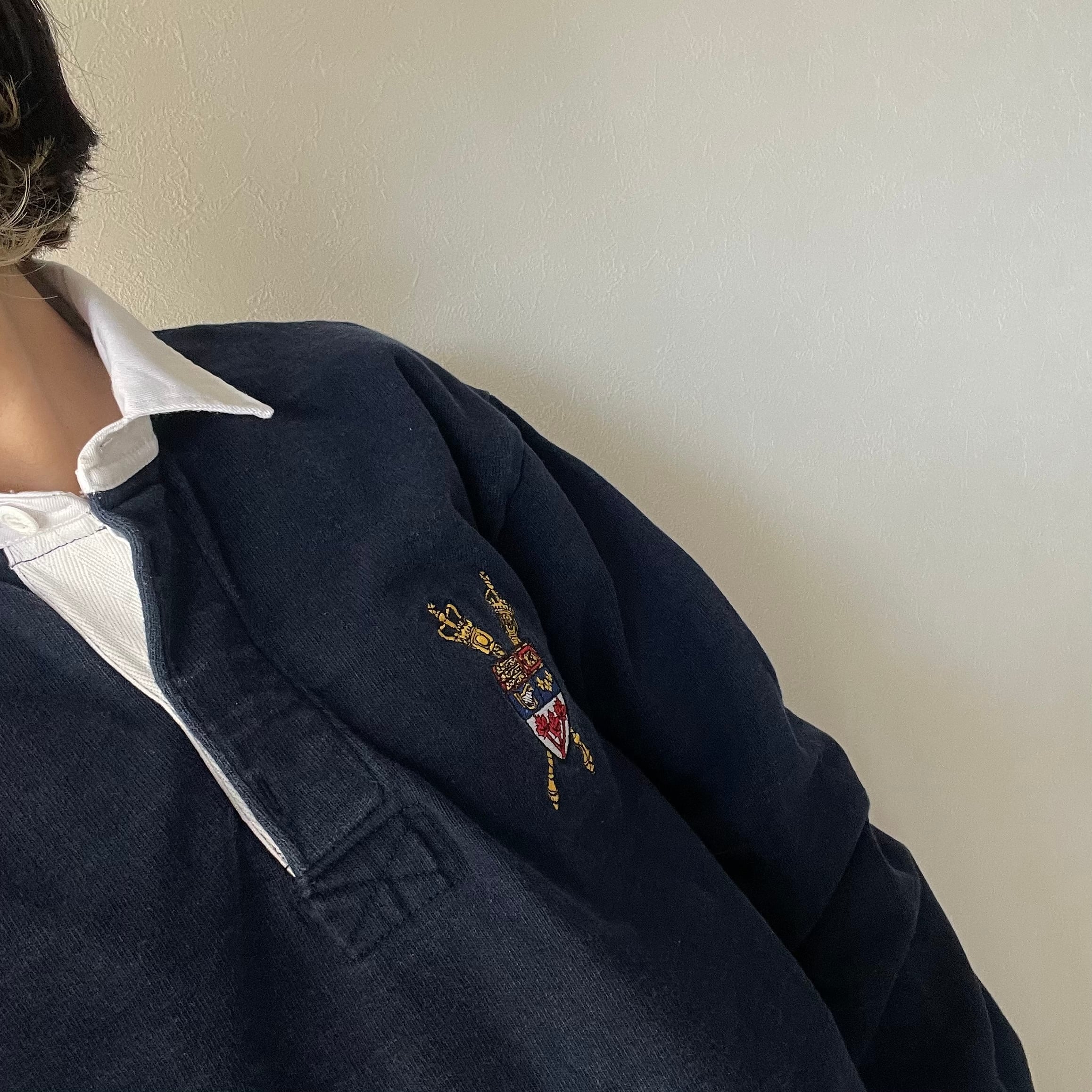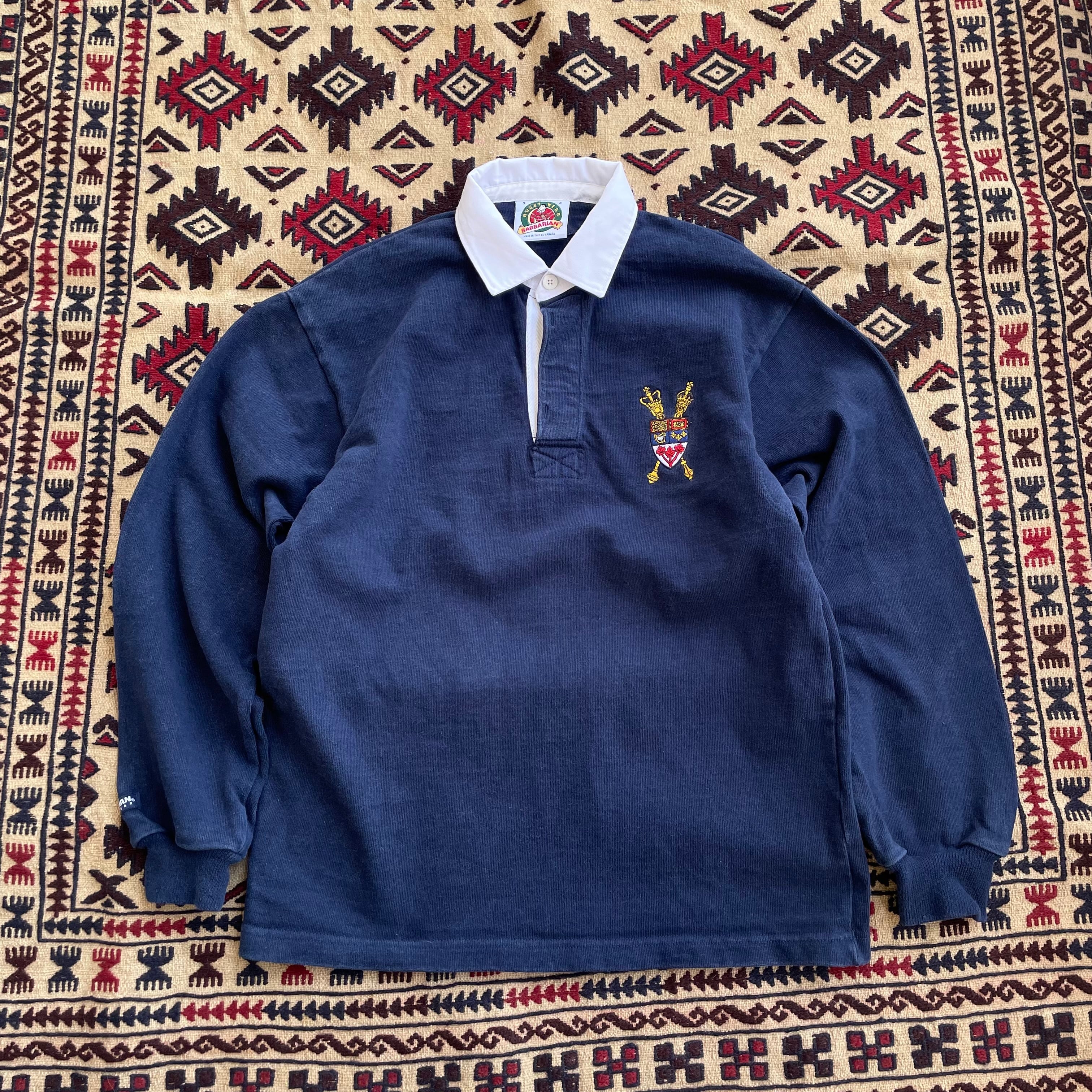 90s barbarian rugby shirt カナダ製 ラグビーシャツ ラガーシャツ クレスト刺繍 ネイビー