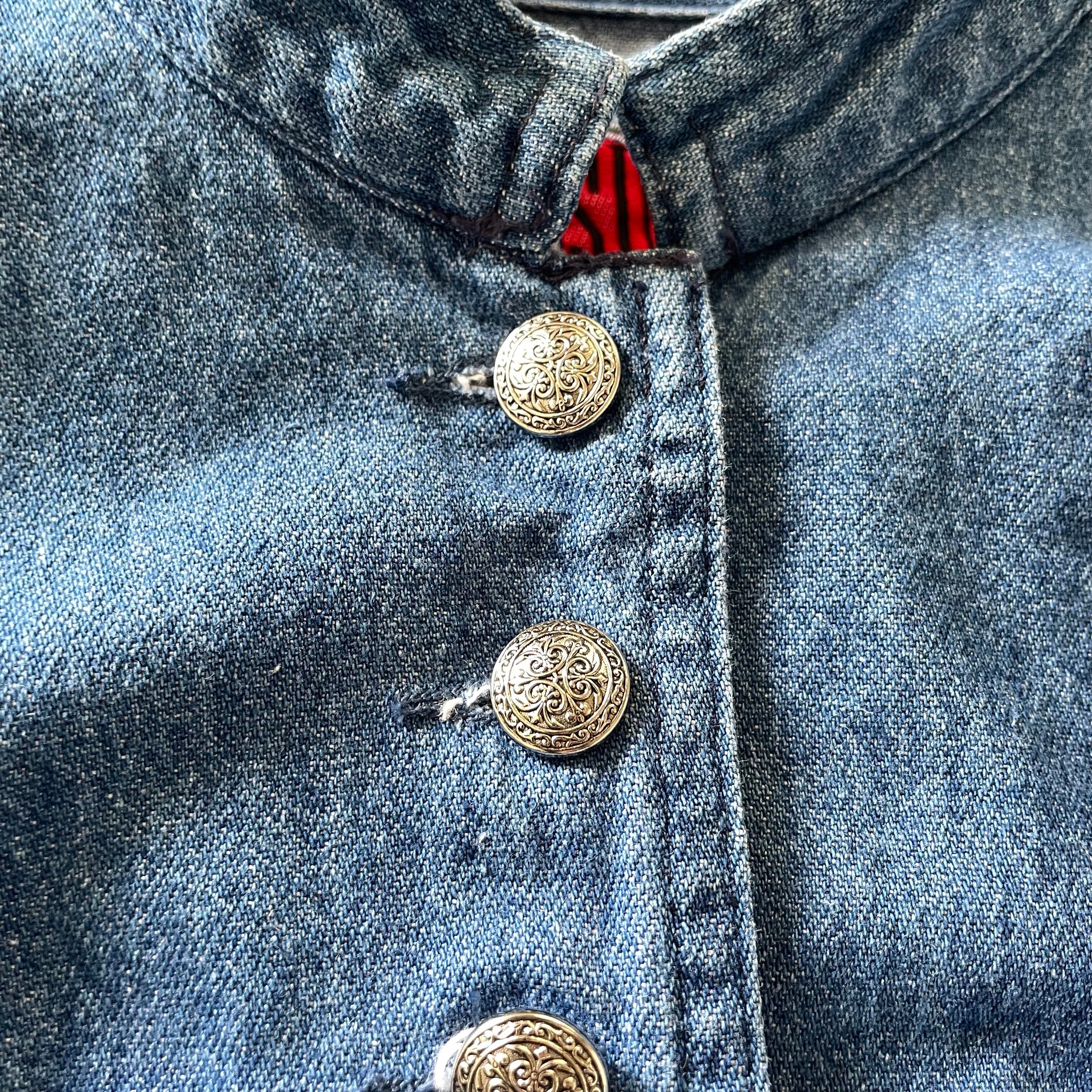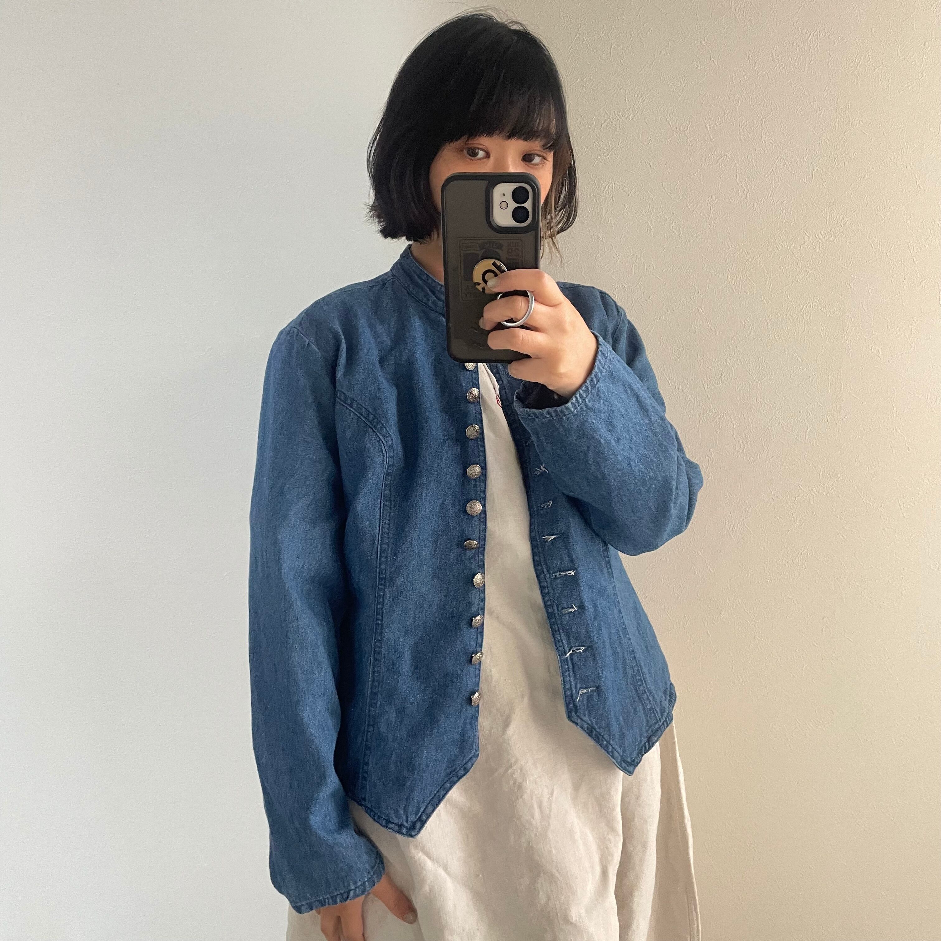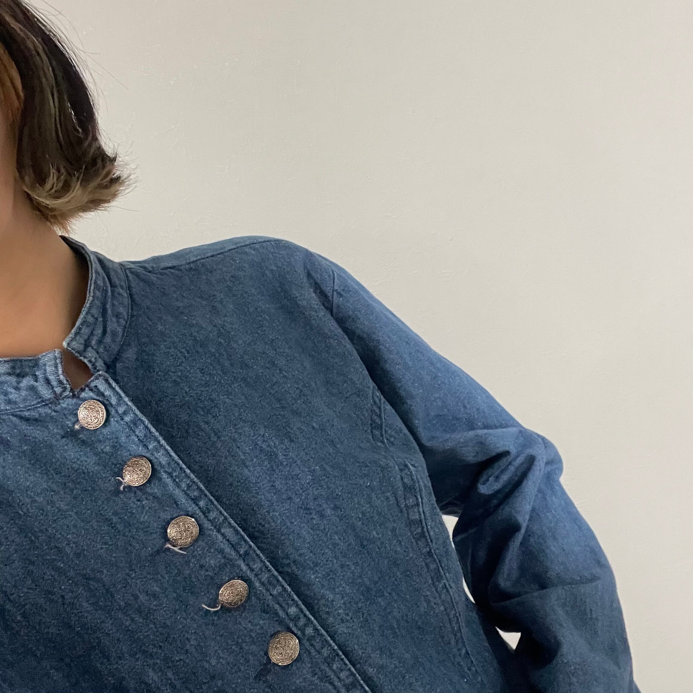 90s made in USA denim jacket アメリカ製 マオカラー スタンドカラー ショート丈 短丈 デニムジャケット