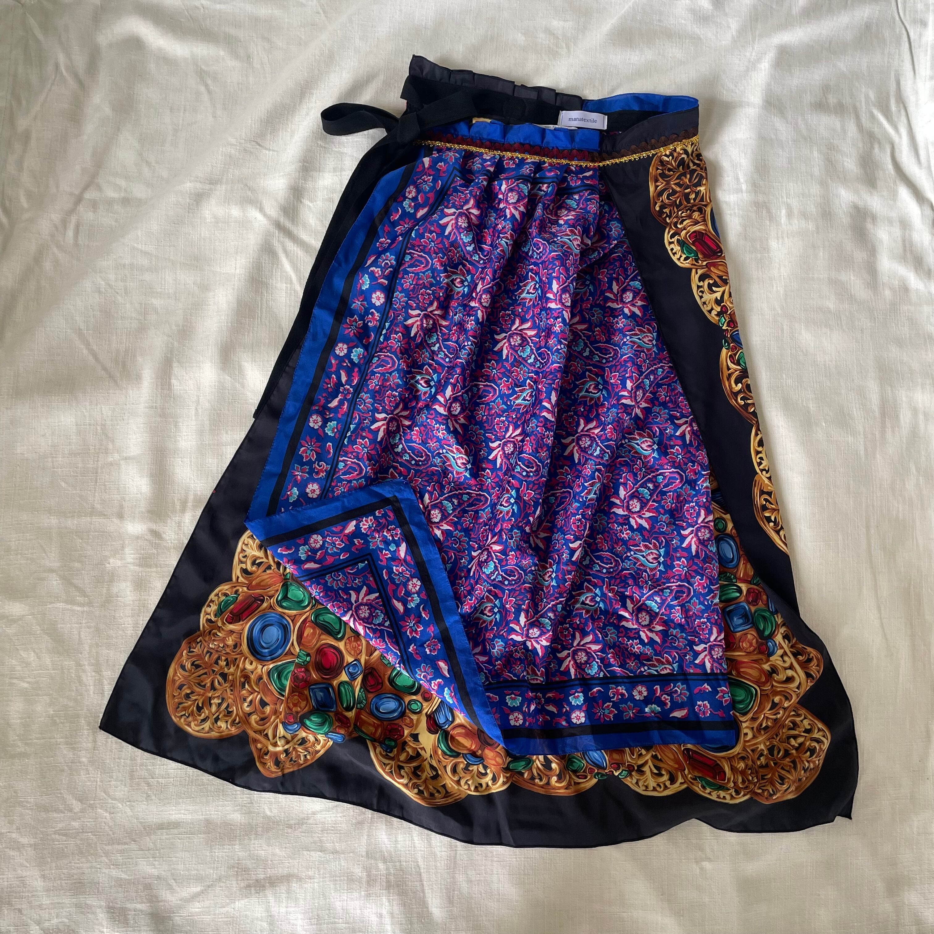 アメリカやヨーロッパのヴィンテージスカーフをリメイクして、巻きスカートのようなエプロンに仕立てました