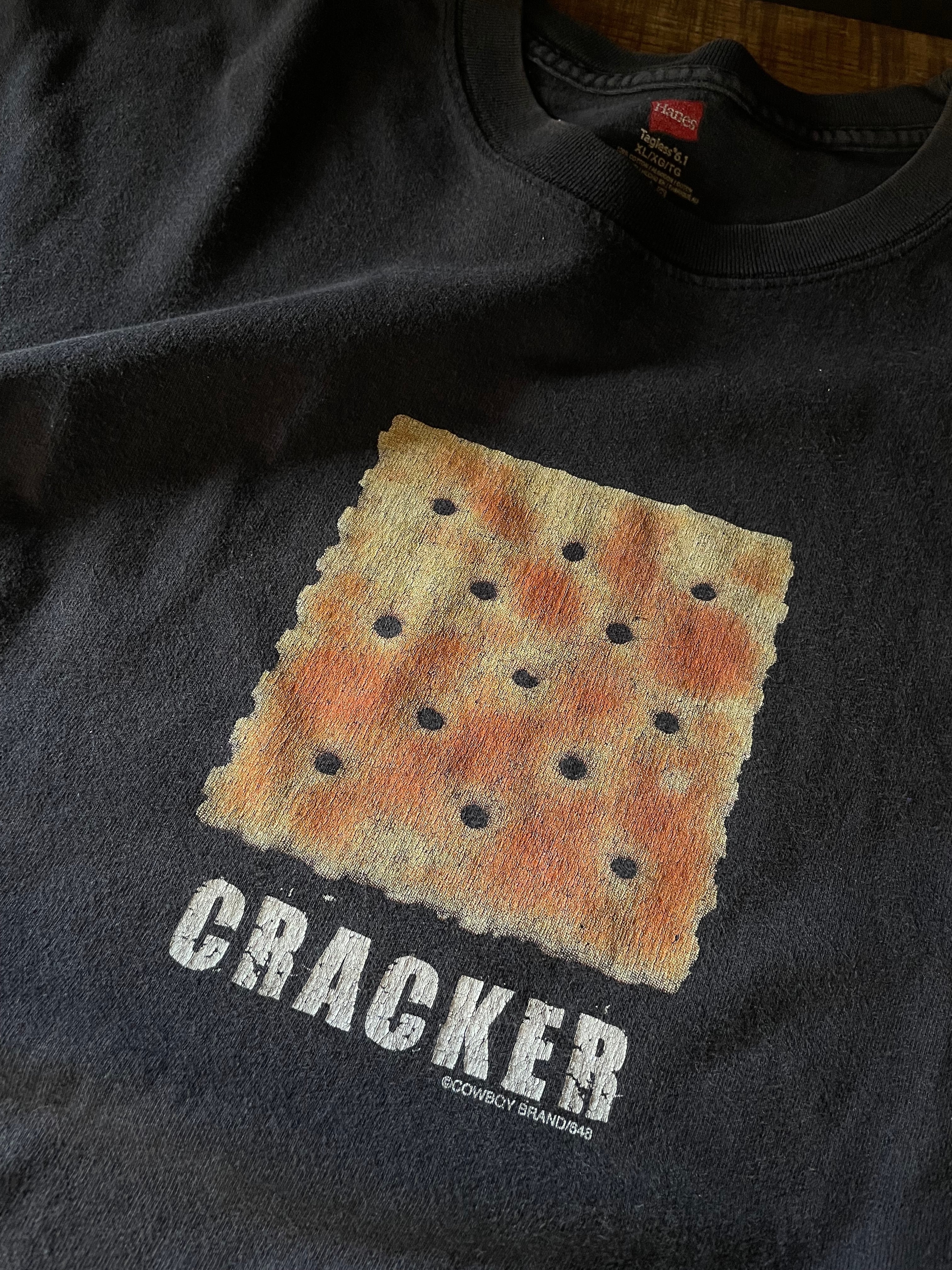 "CRACKER" Tshirt Hanes クラッカー プリントTシャツ フェード ブラック