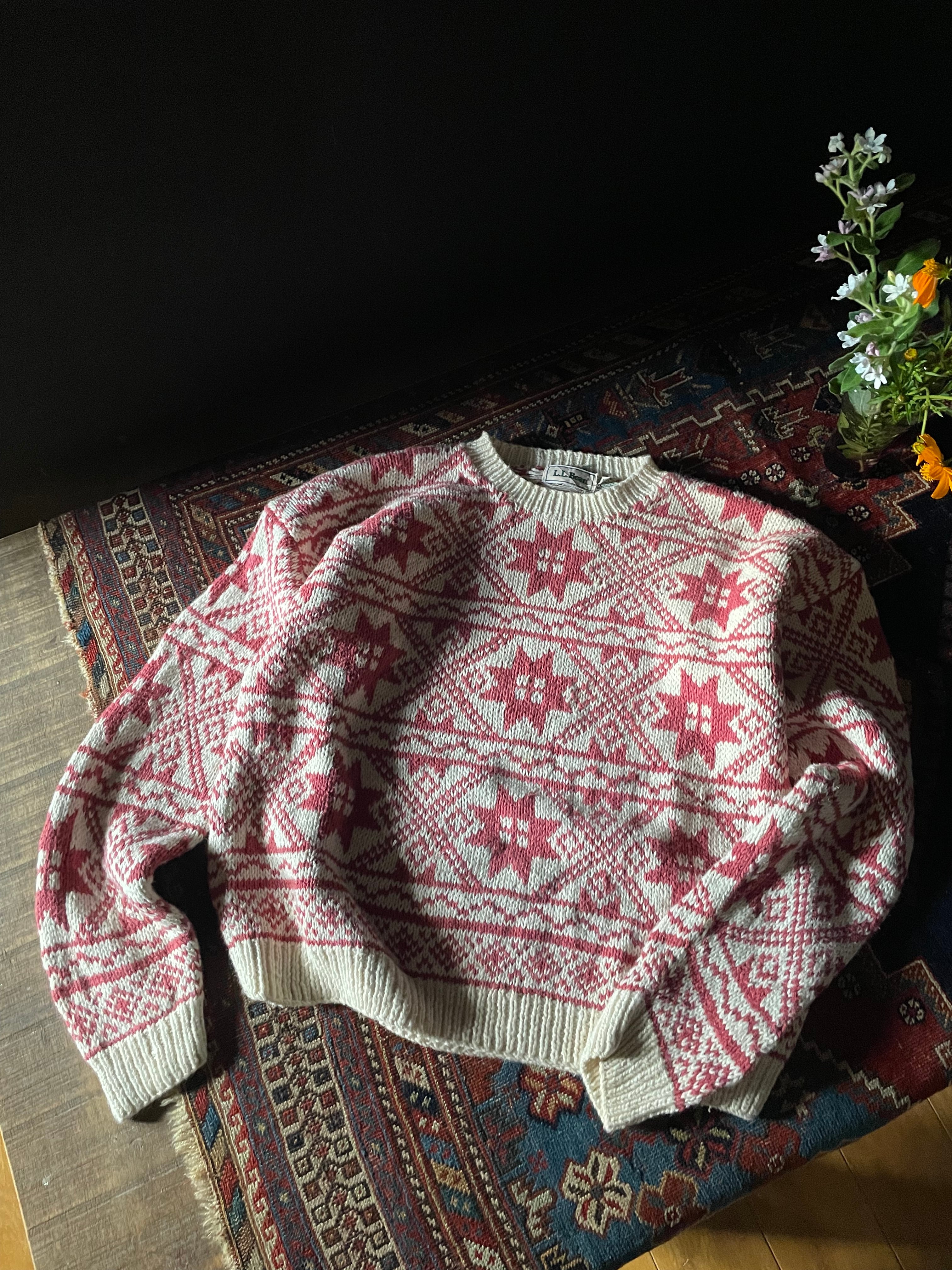 L.L.Bean 80s cotton ramie nordic knit sweater エルエルビーン コットンリネン ハンドメイドニット