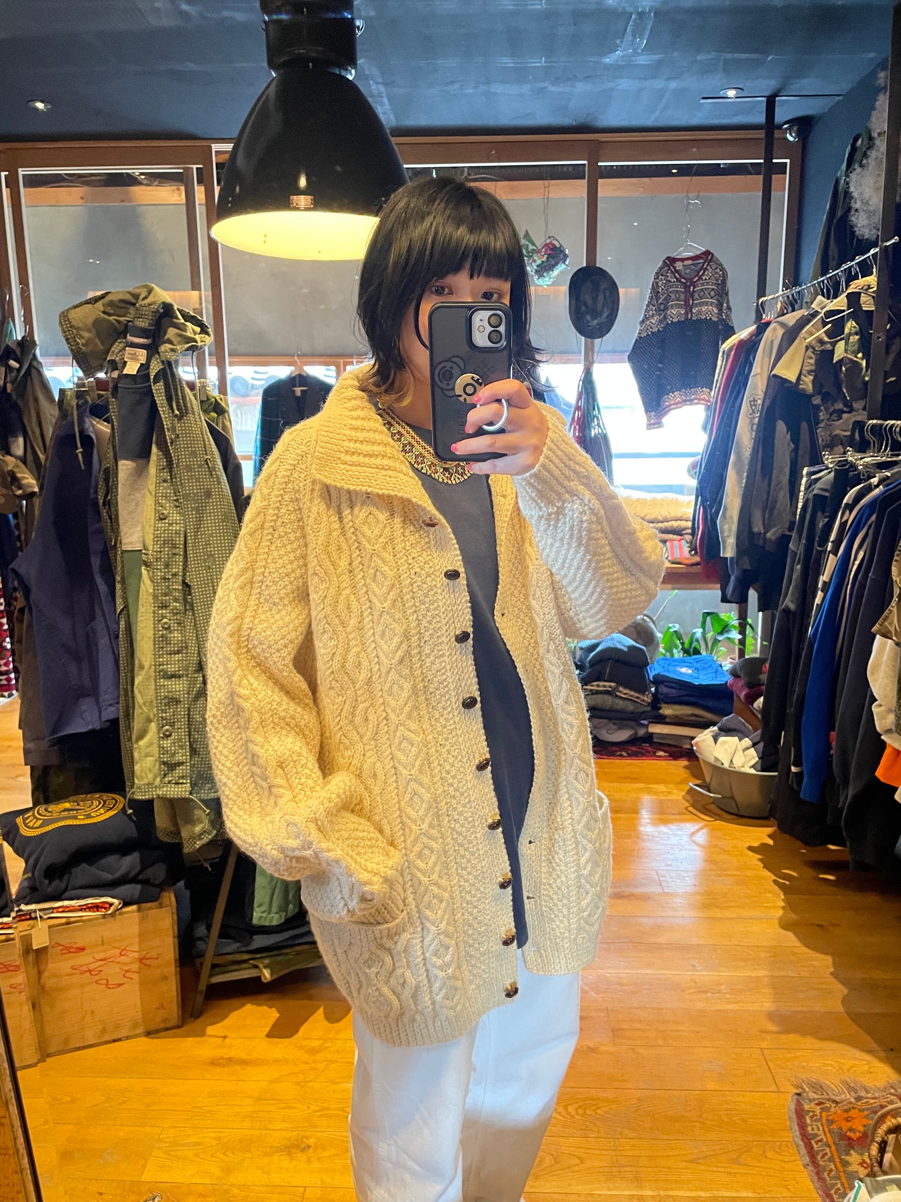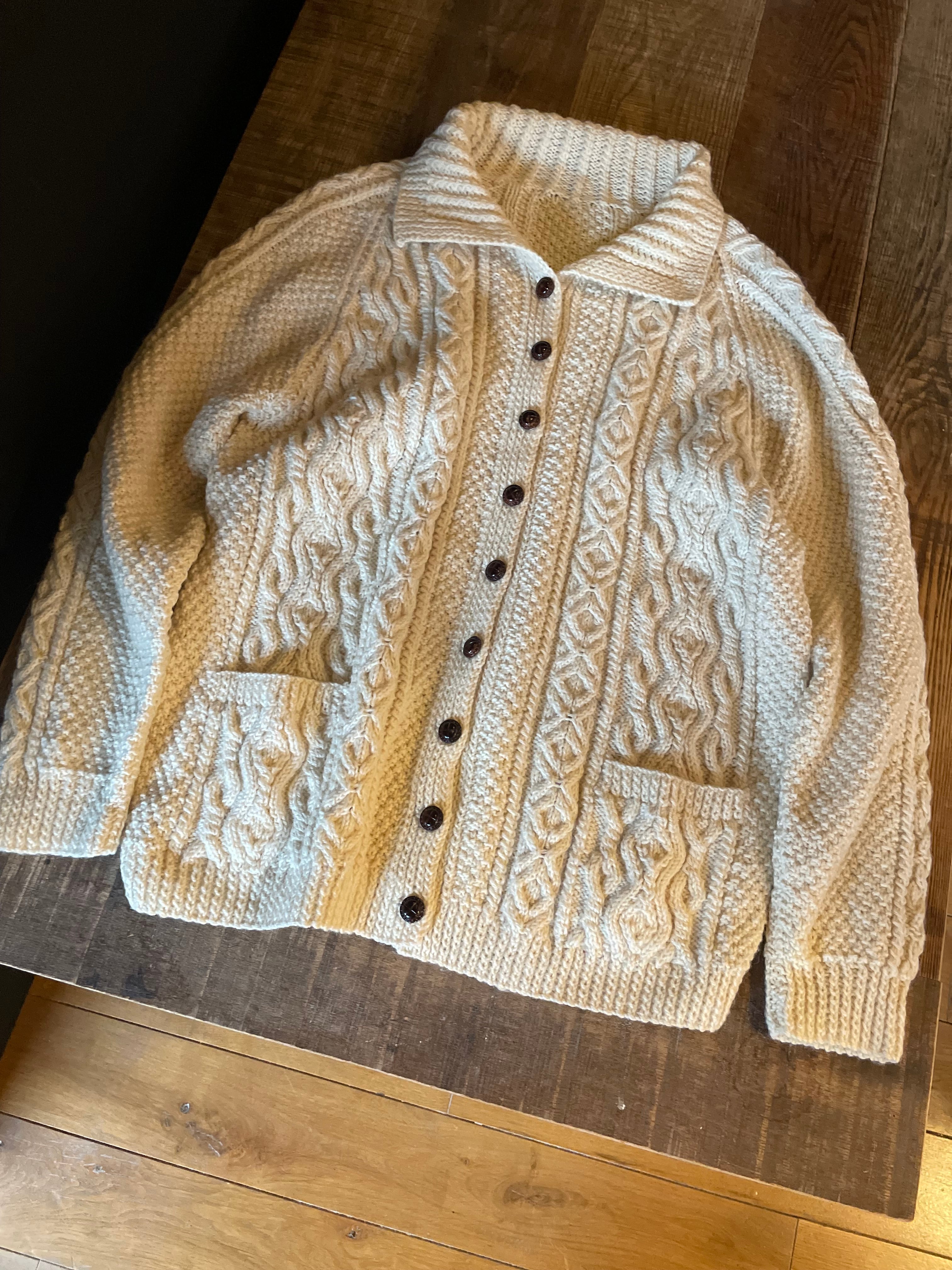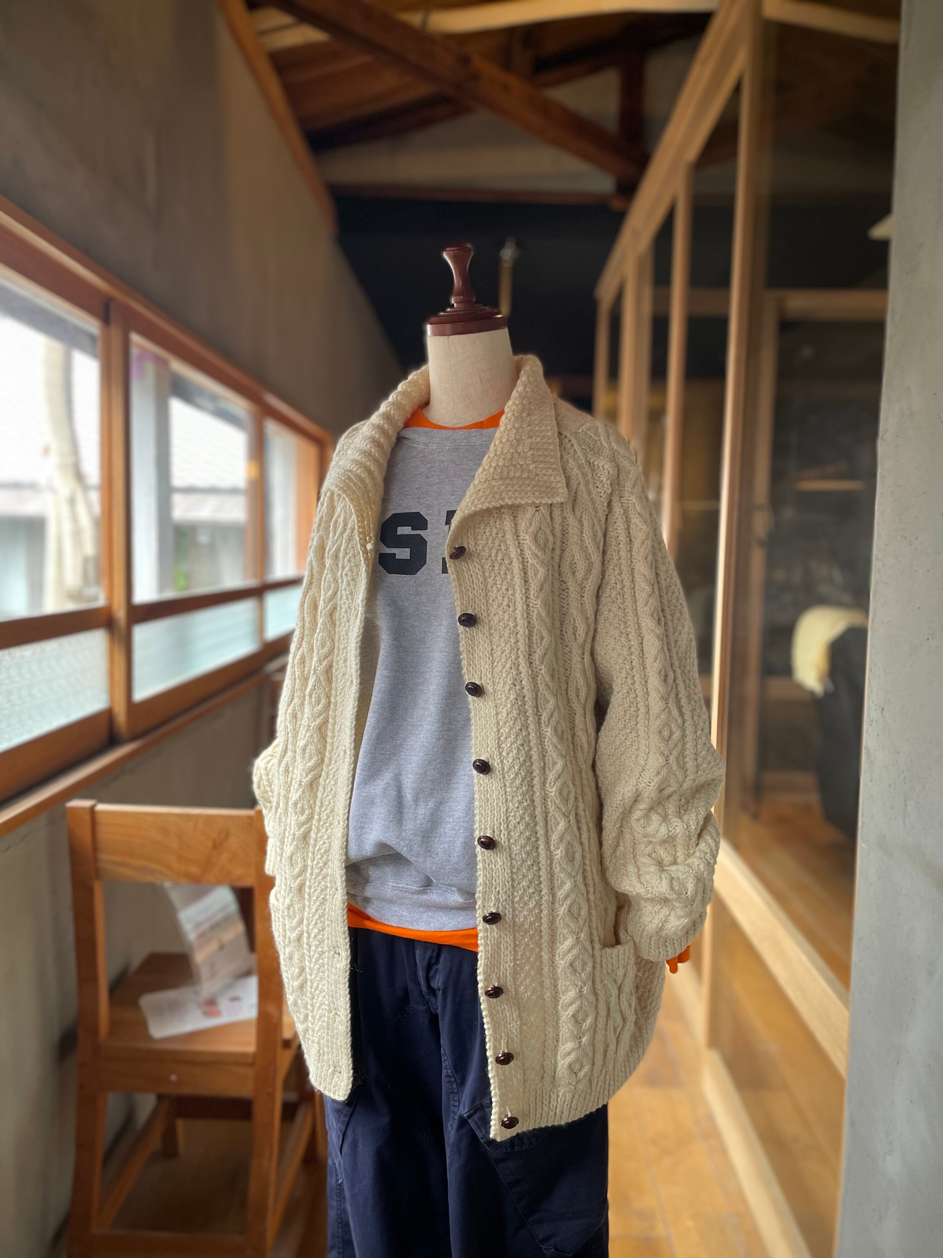 hand made wool knit cardigan フィッシャーマンニット アランセーター カーディガン