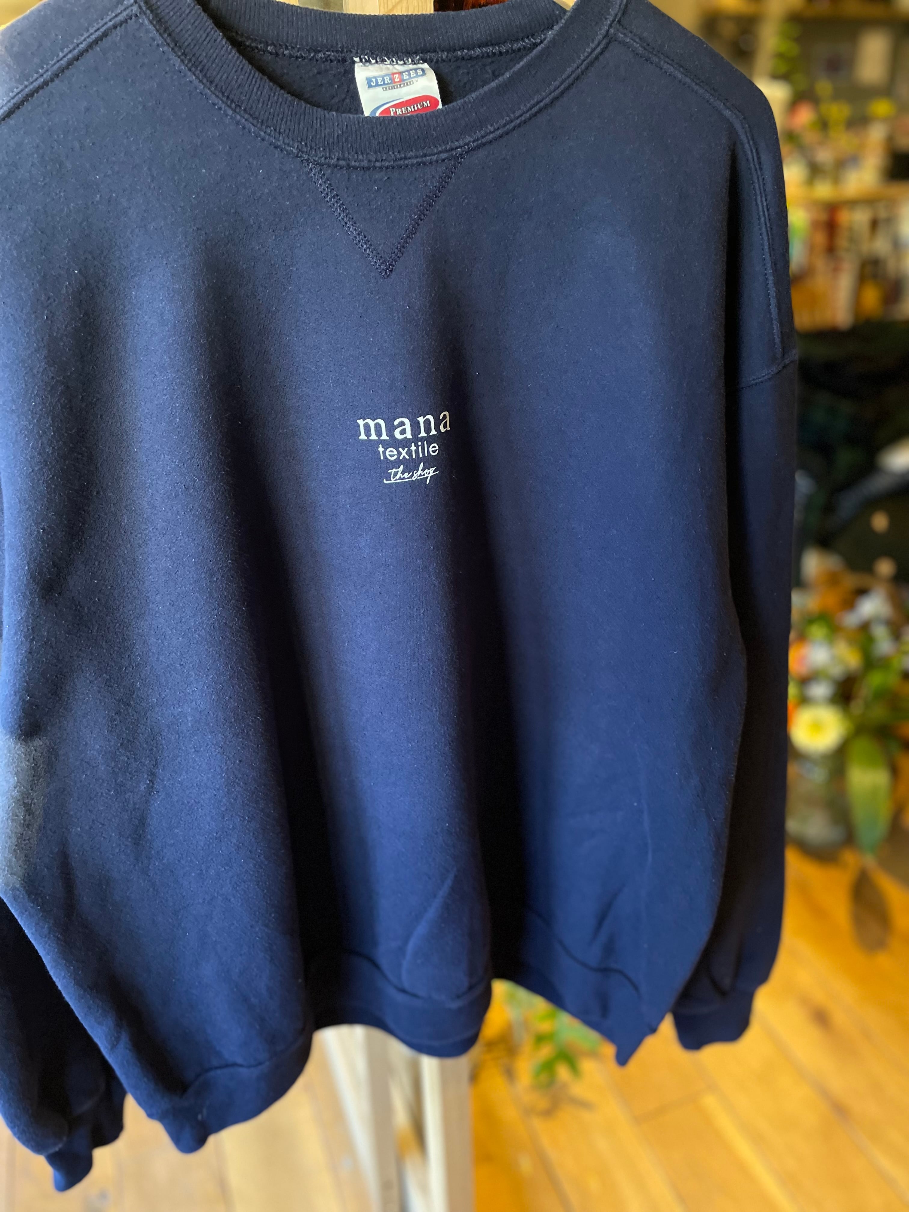 【ネイビー2XLサイズ】manatextile original sweat オリジナル 古着ボディ プリントスウェット