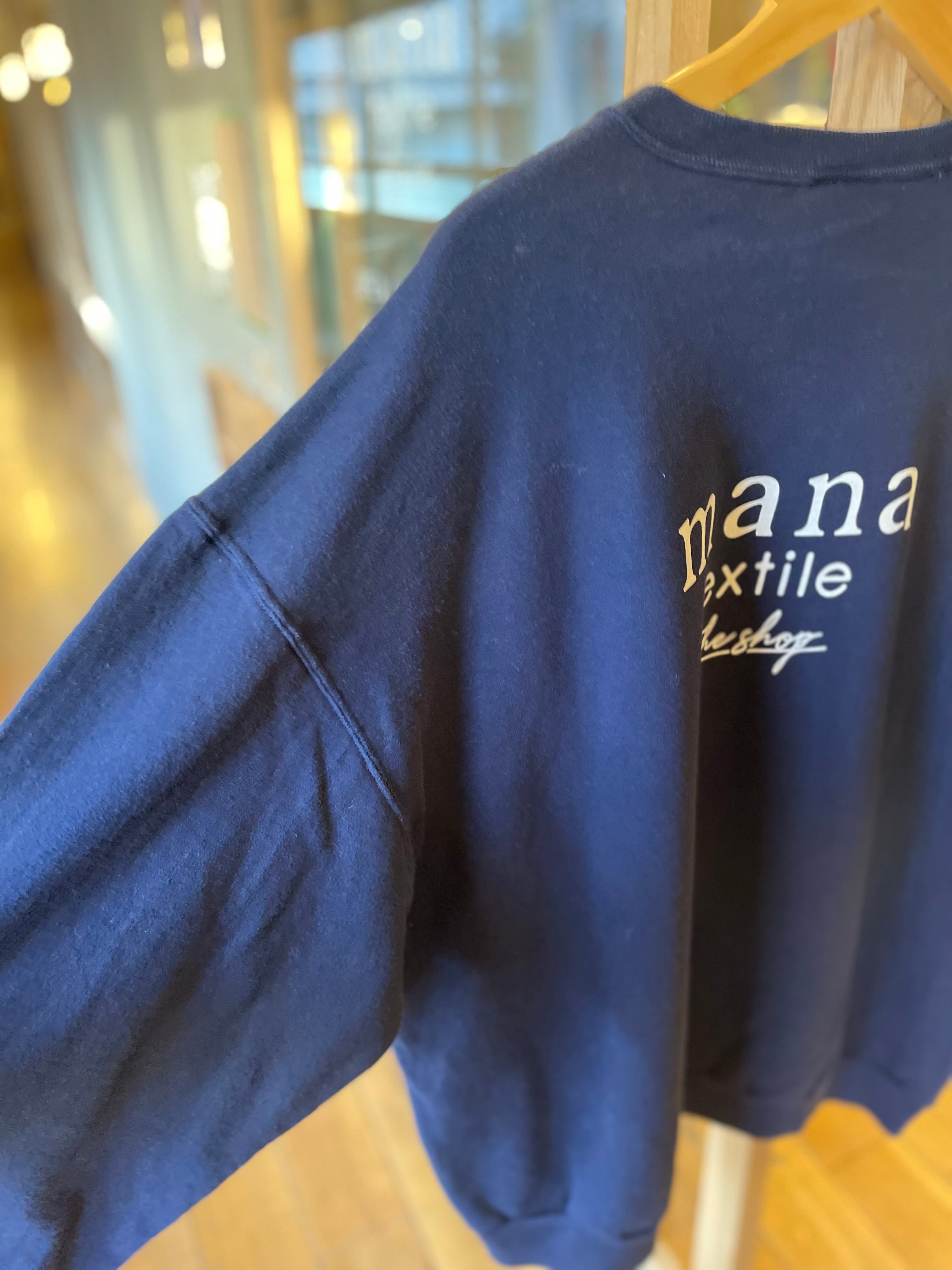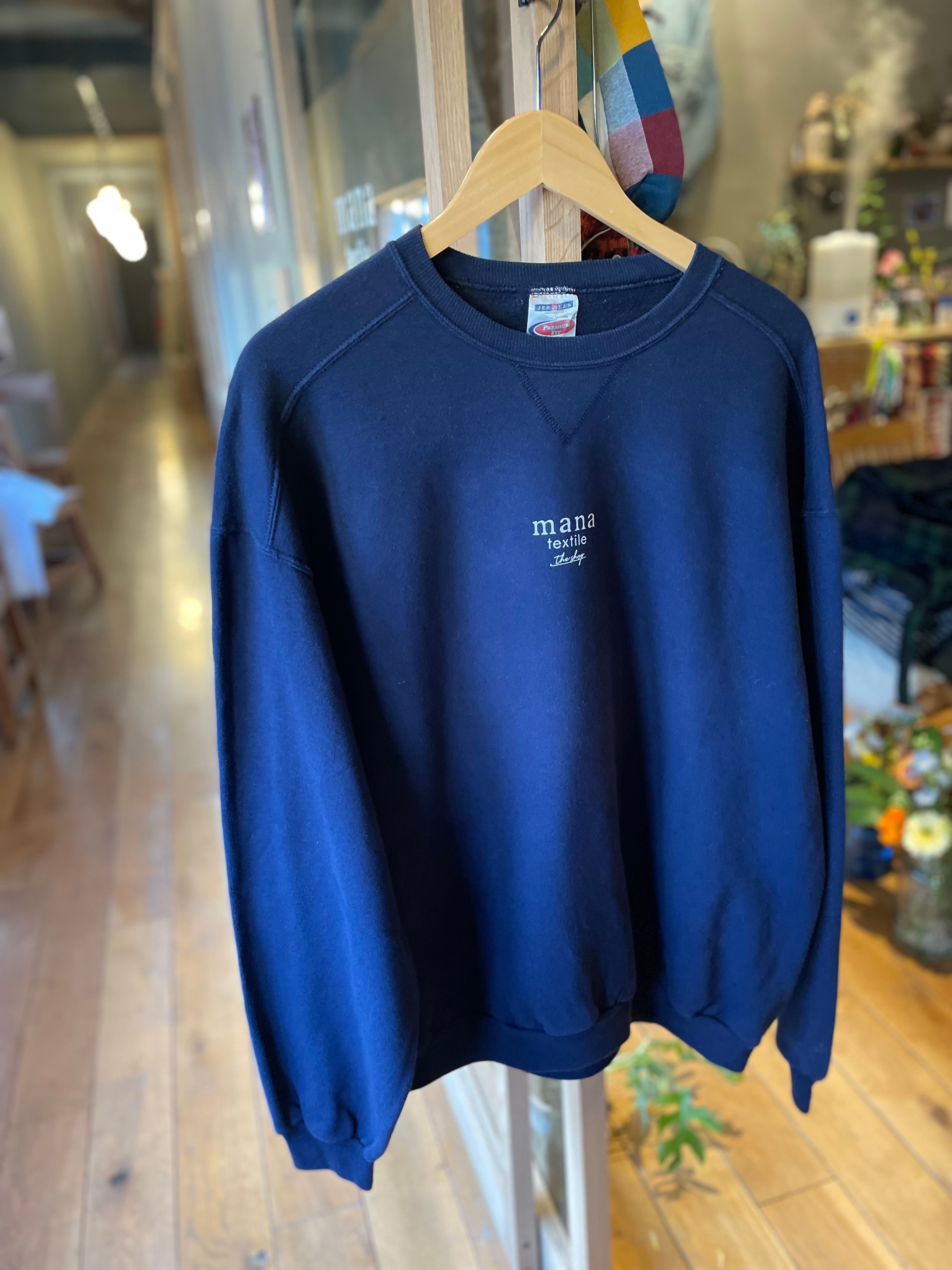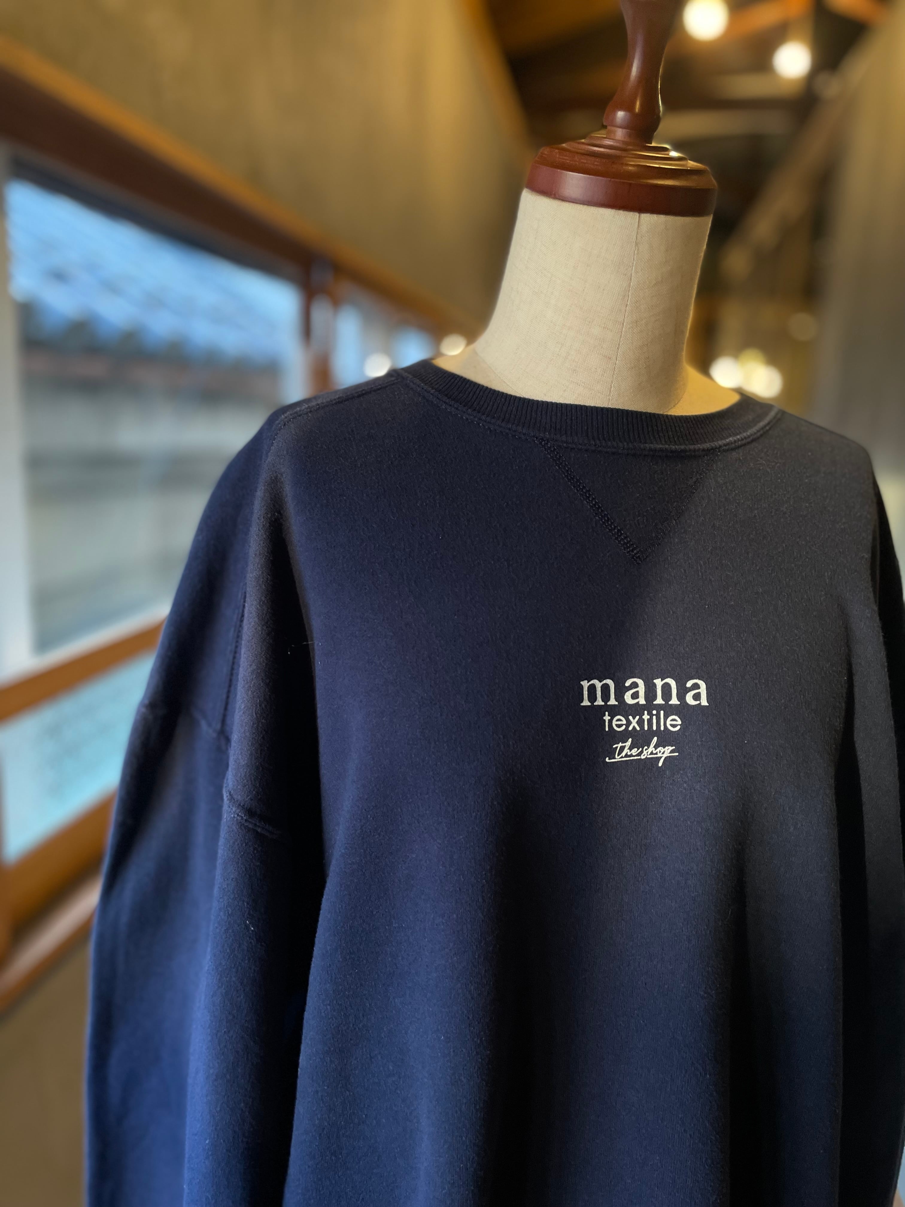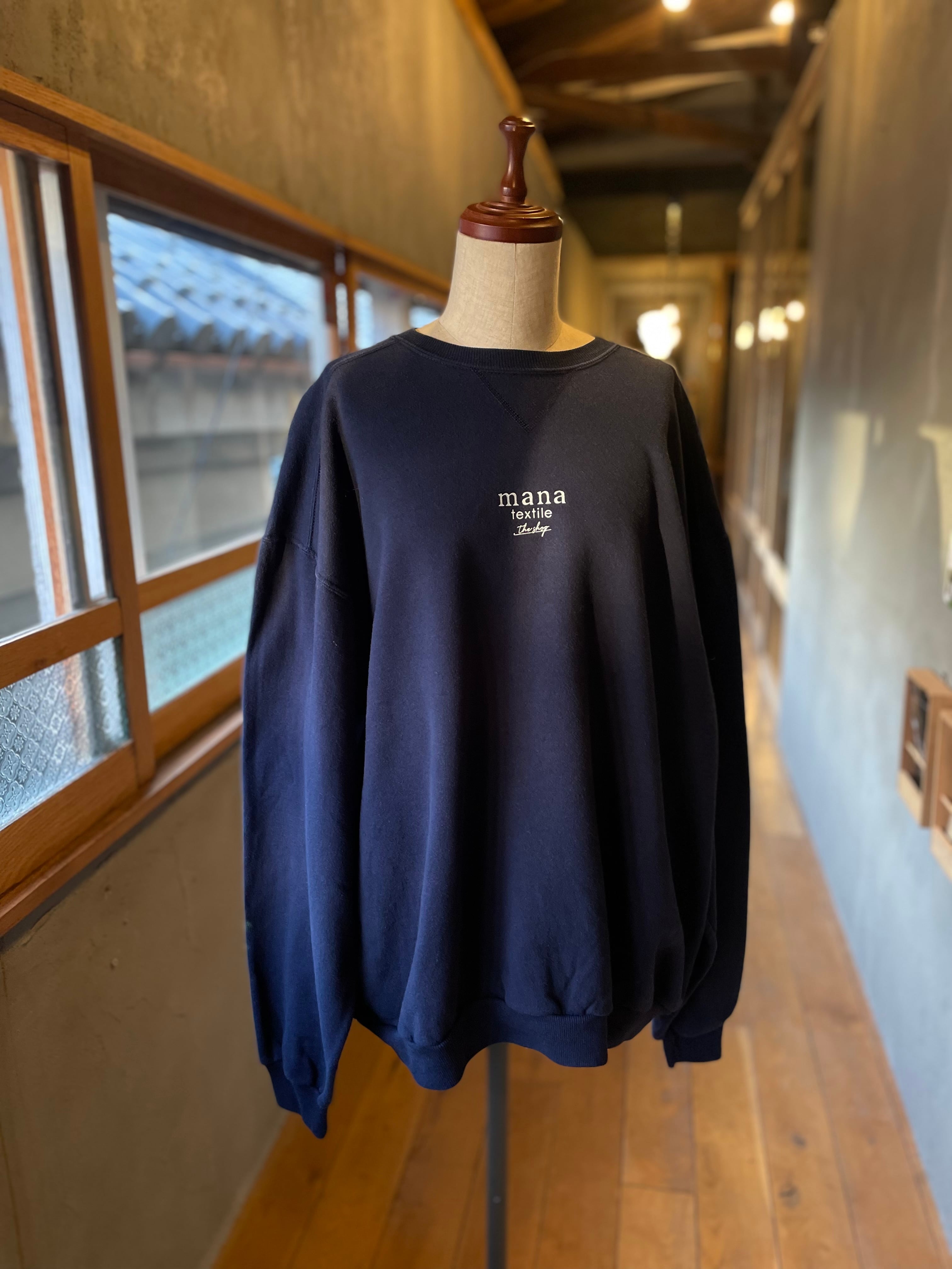 【ネイビーXLサイズ】manatextile original sweat オリジナル 古着ボディ プリントスウェット