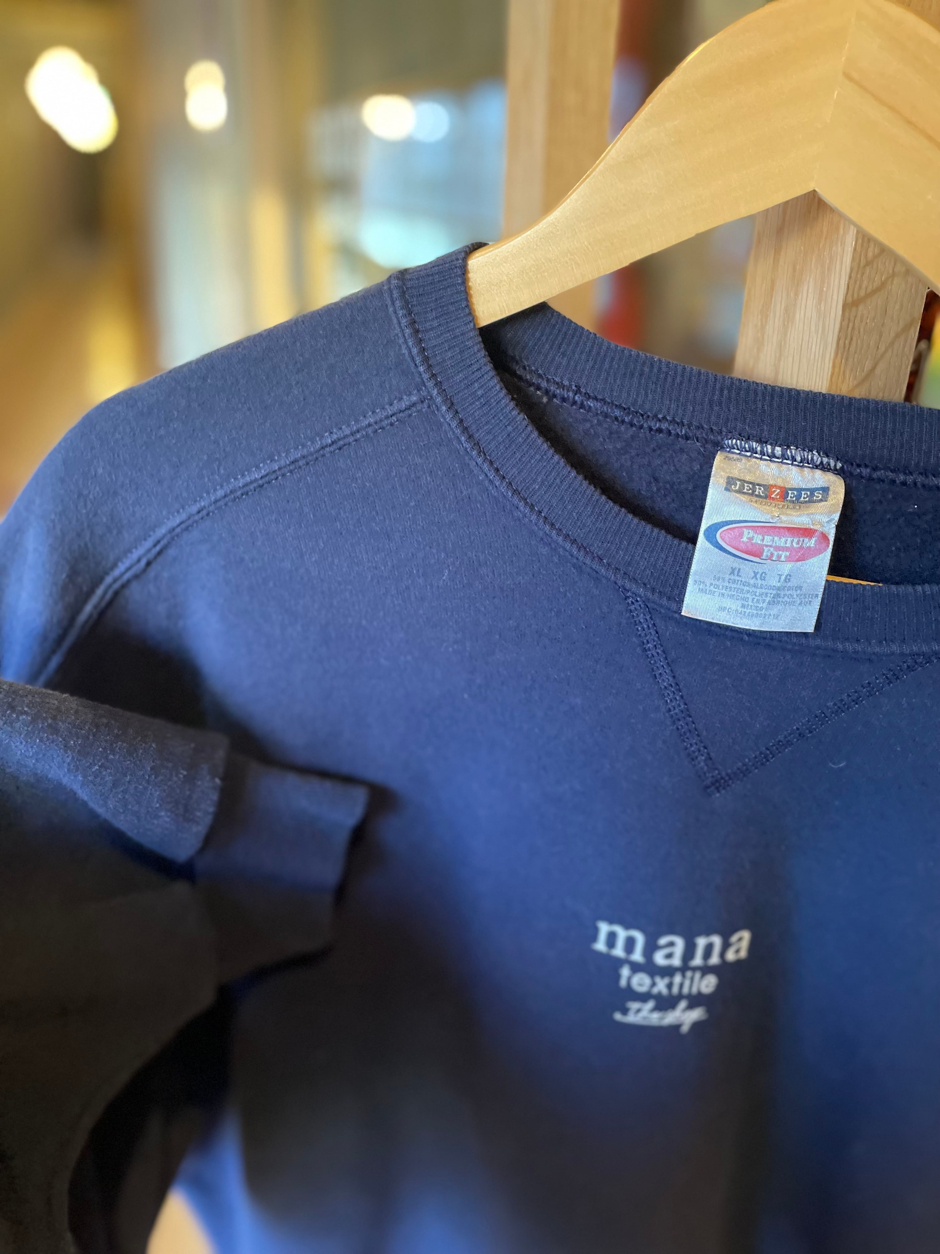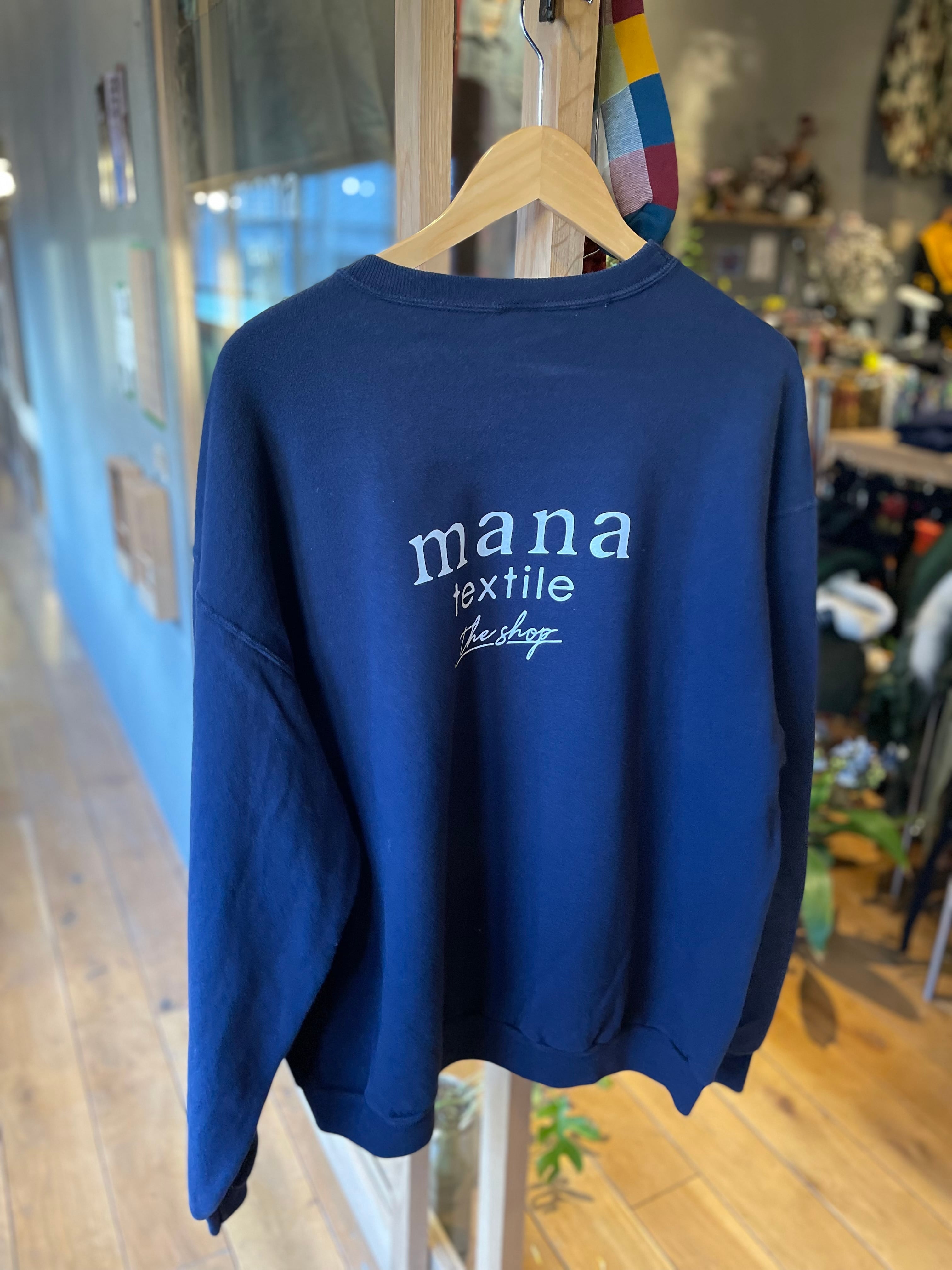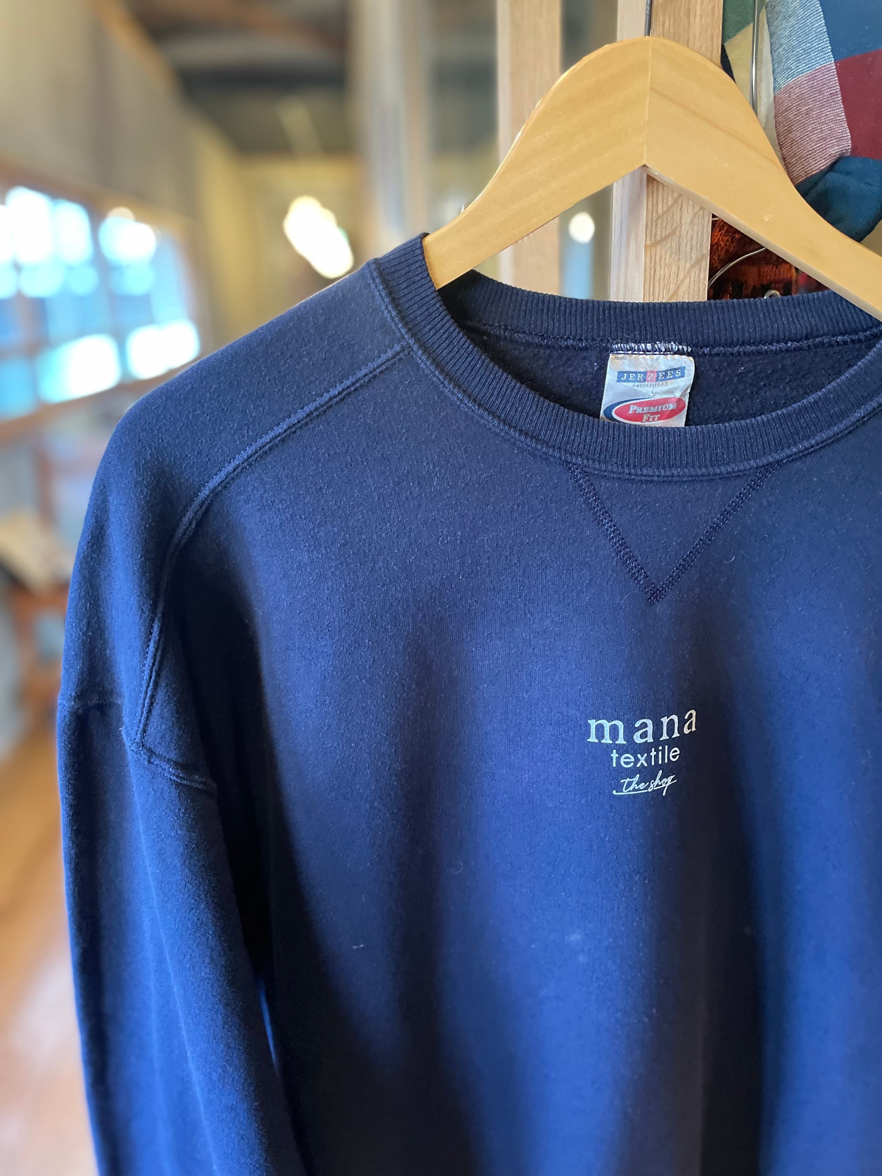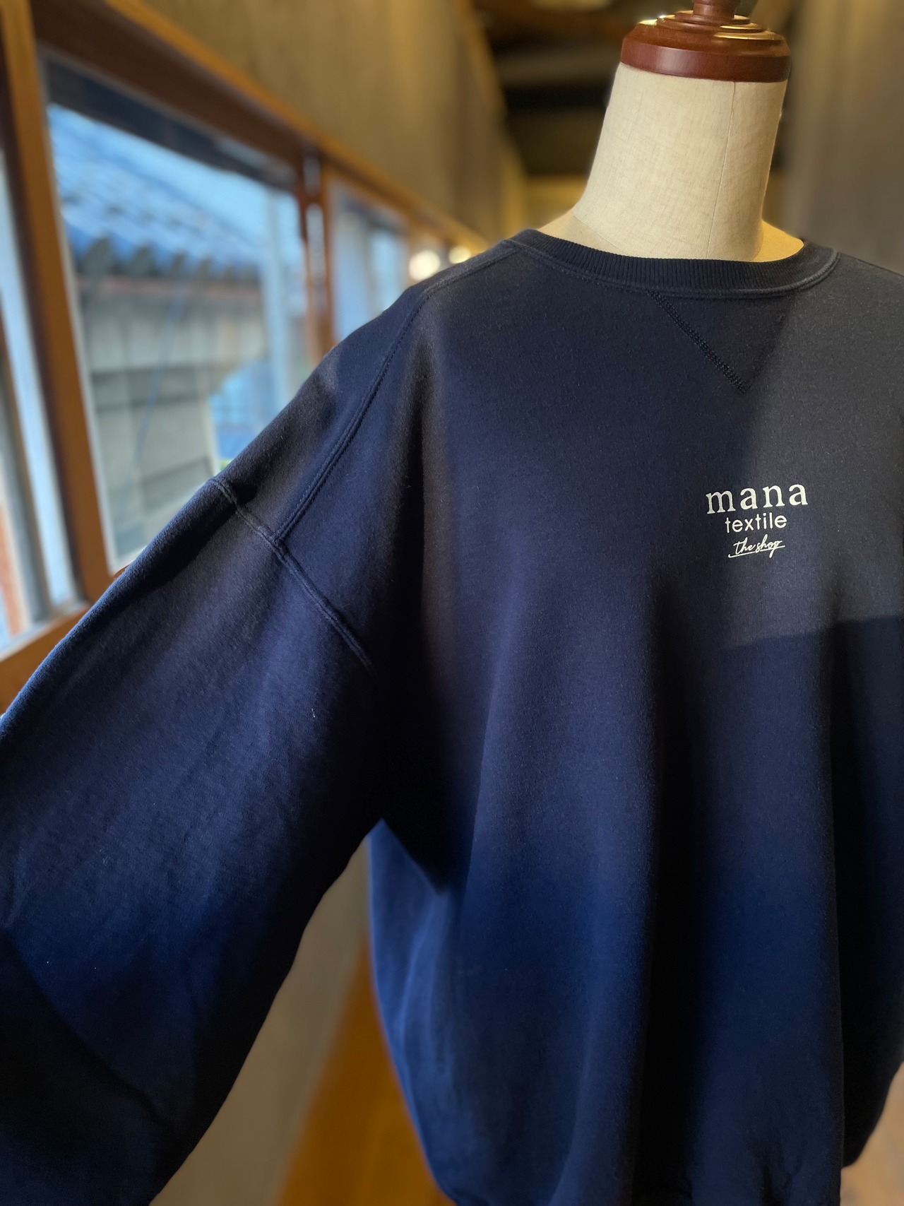 【ネイビーXLサイズ】manatextile original sweat オリジナル 古着ボディ プリントスウェット
