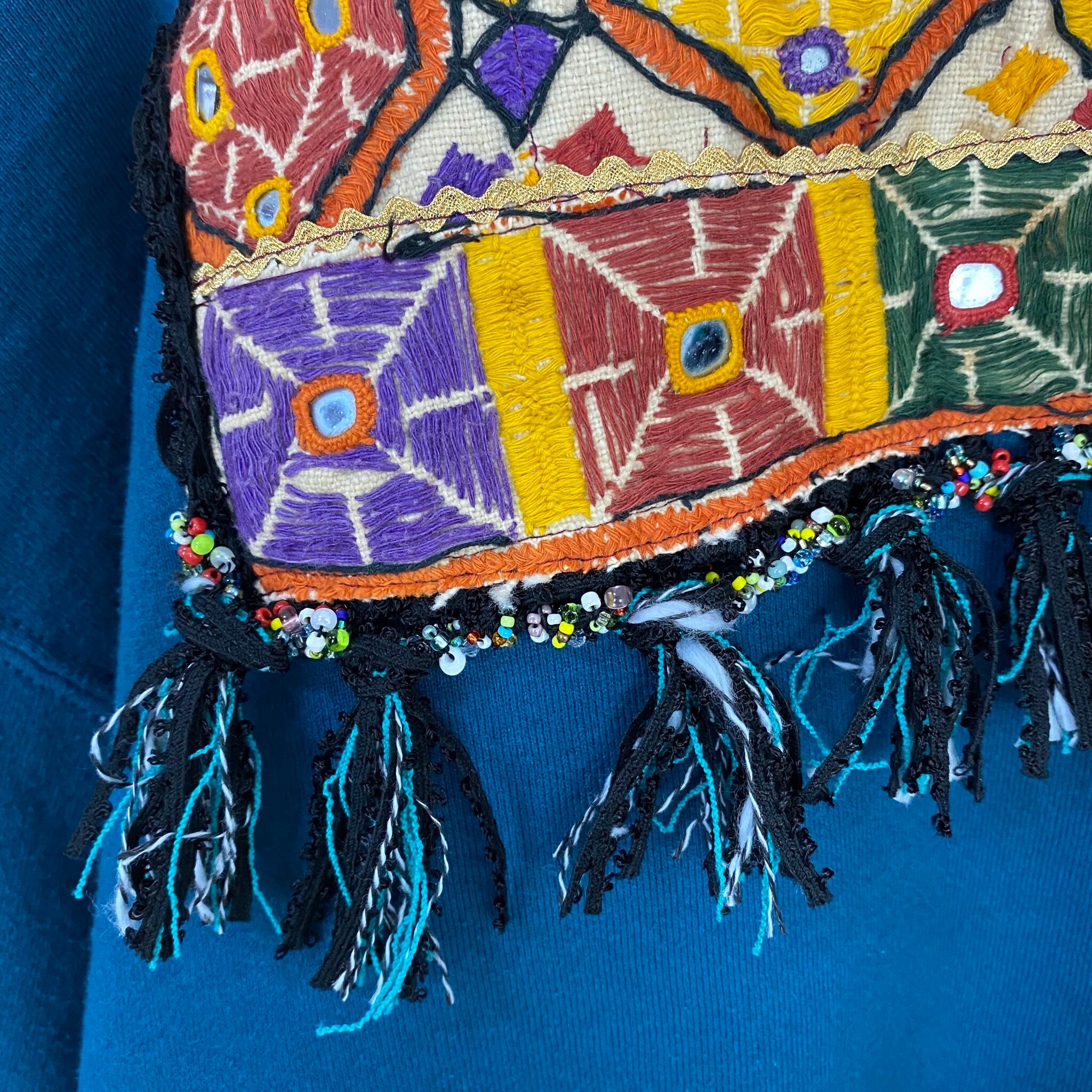 インドのアンティーク刺繍生地を組み合わせてリメイクしたスウェットです