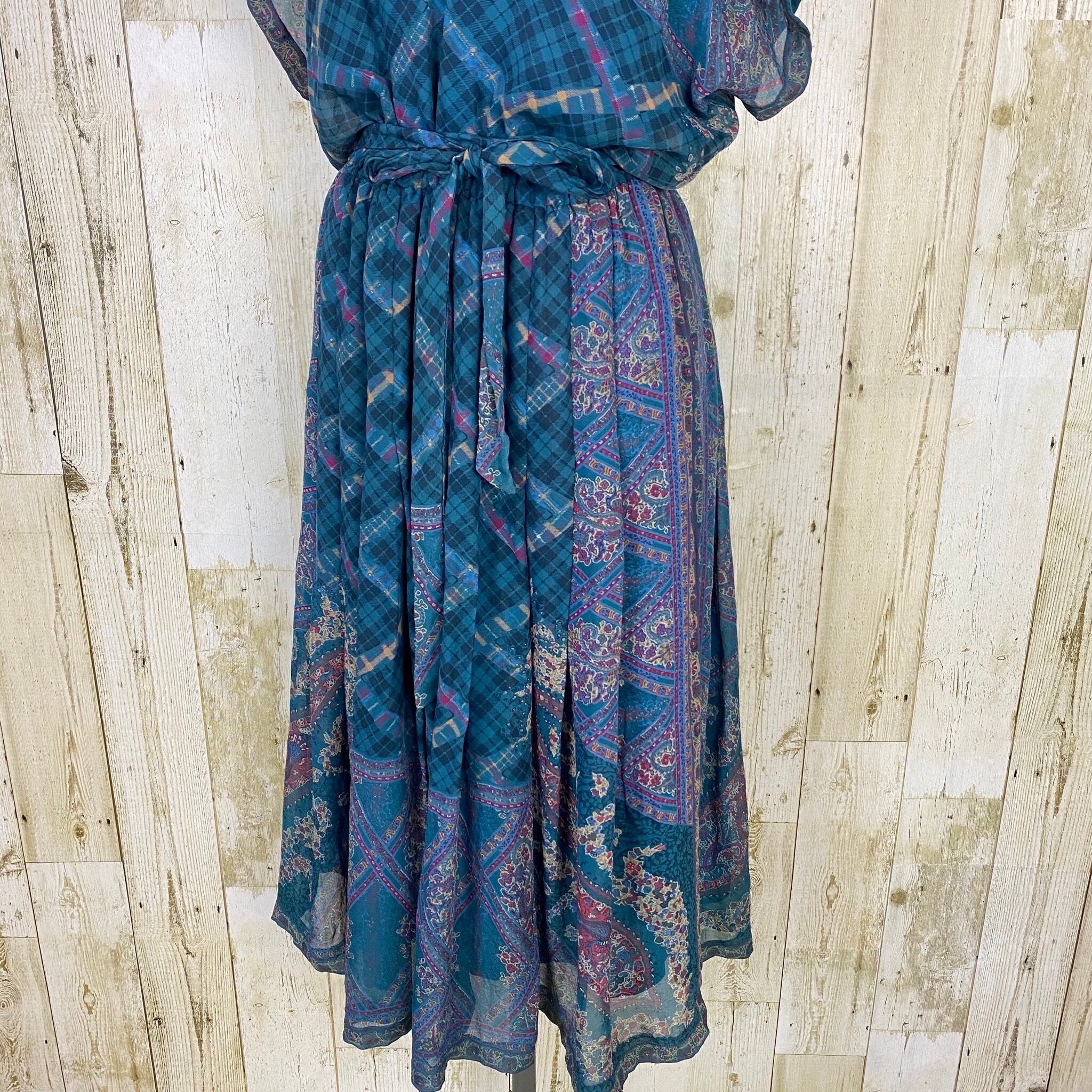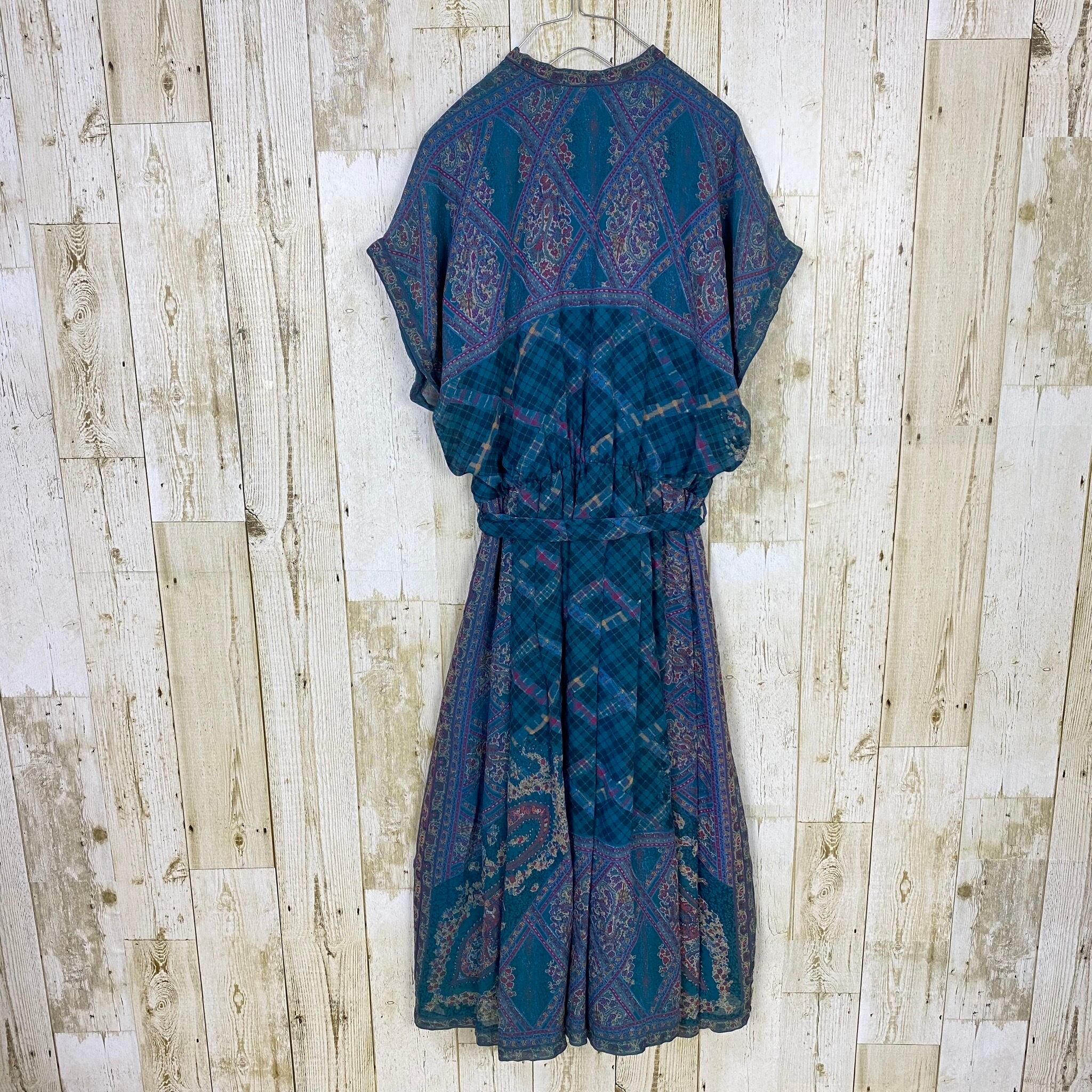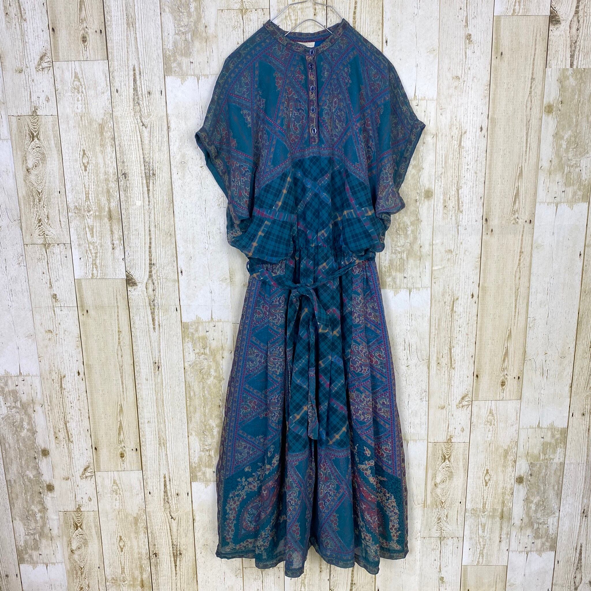 80's西ドイツ製ワンピース▼△シフォンパッチワーク柄▼△フリーサイズ