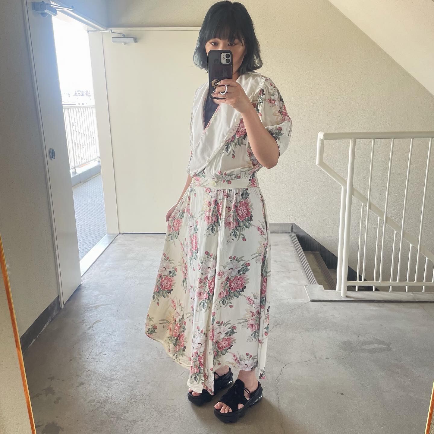 90s USA製 vintage onepiece レトロワンピ フラワー 花柄プリント ロングワンピース アンティーク調