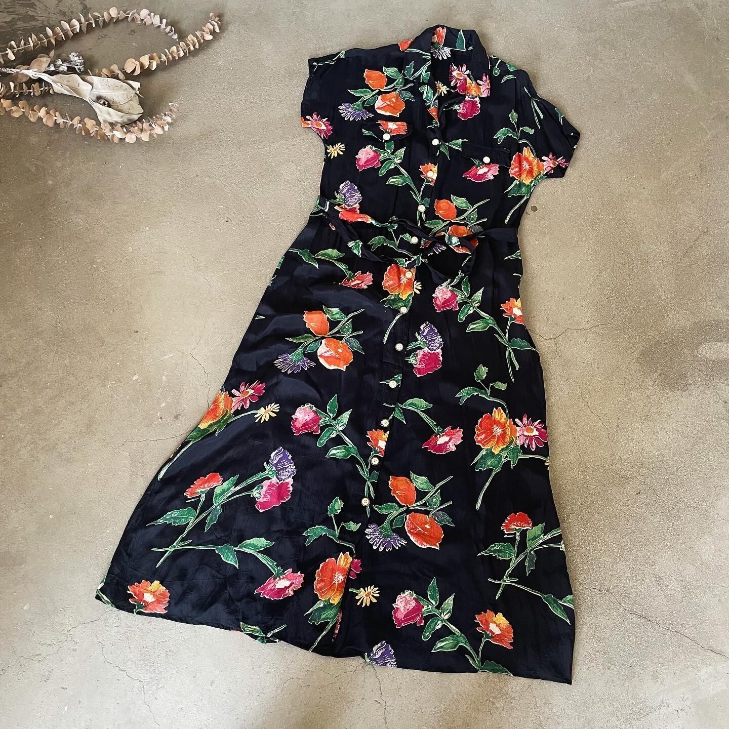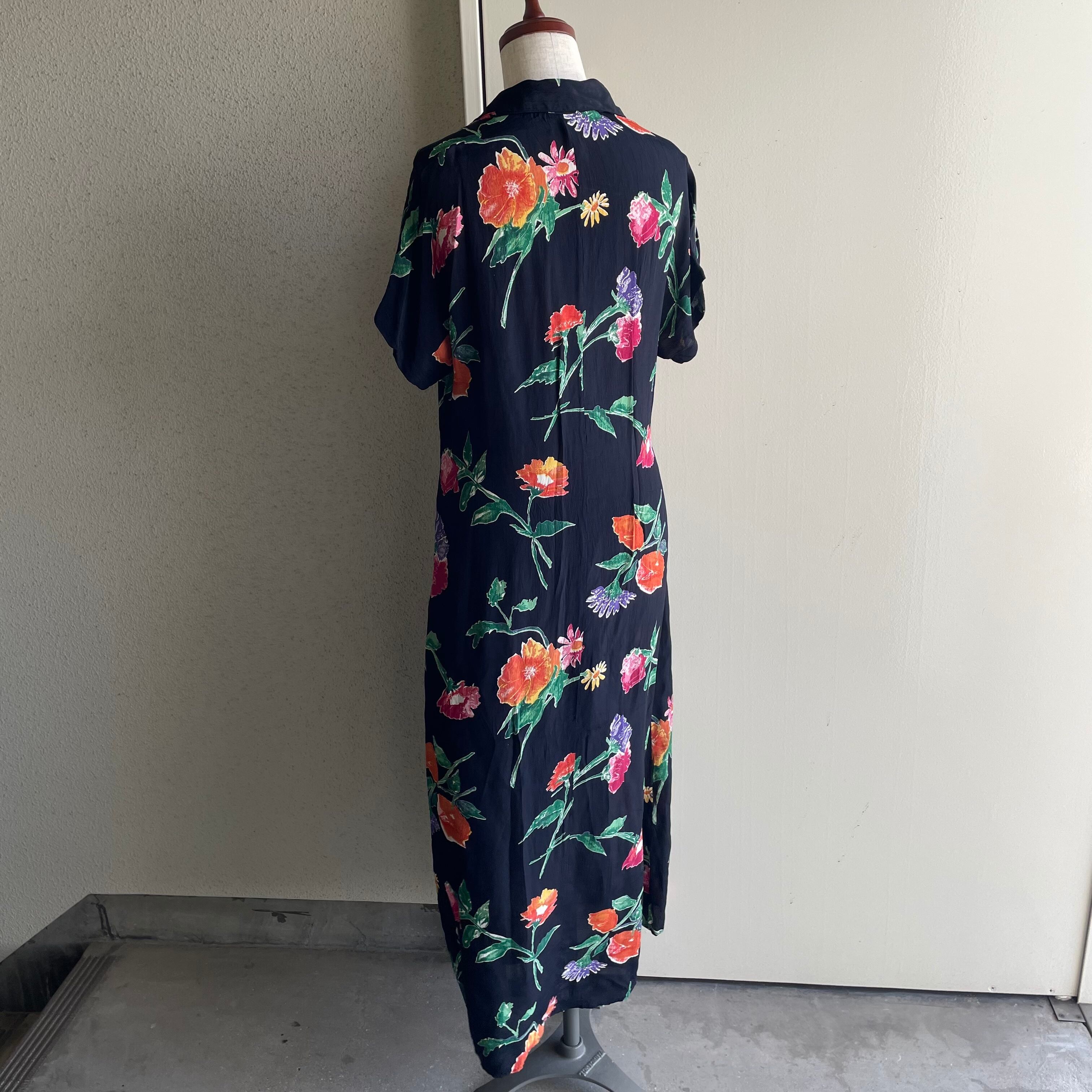 90s vintage onepiece インド製 レーヨン100% 花柄 フラワープリント ロングワンピース