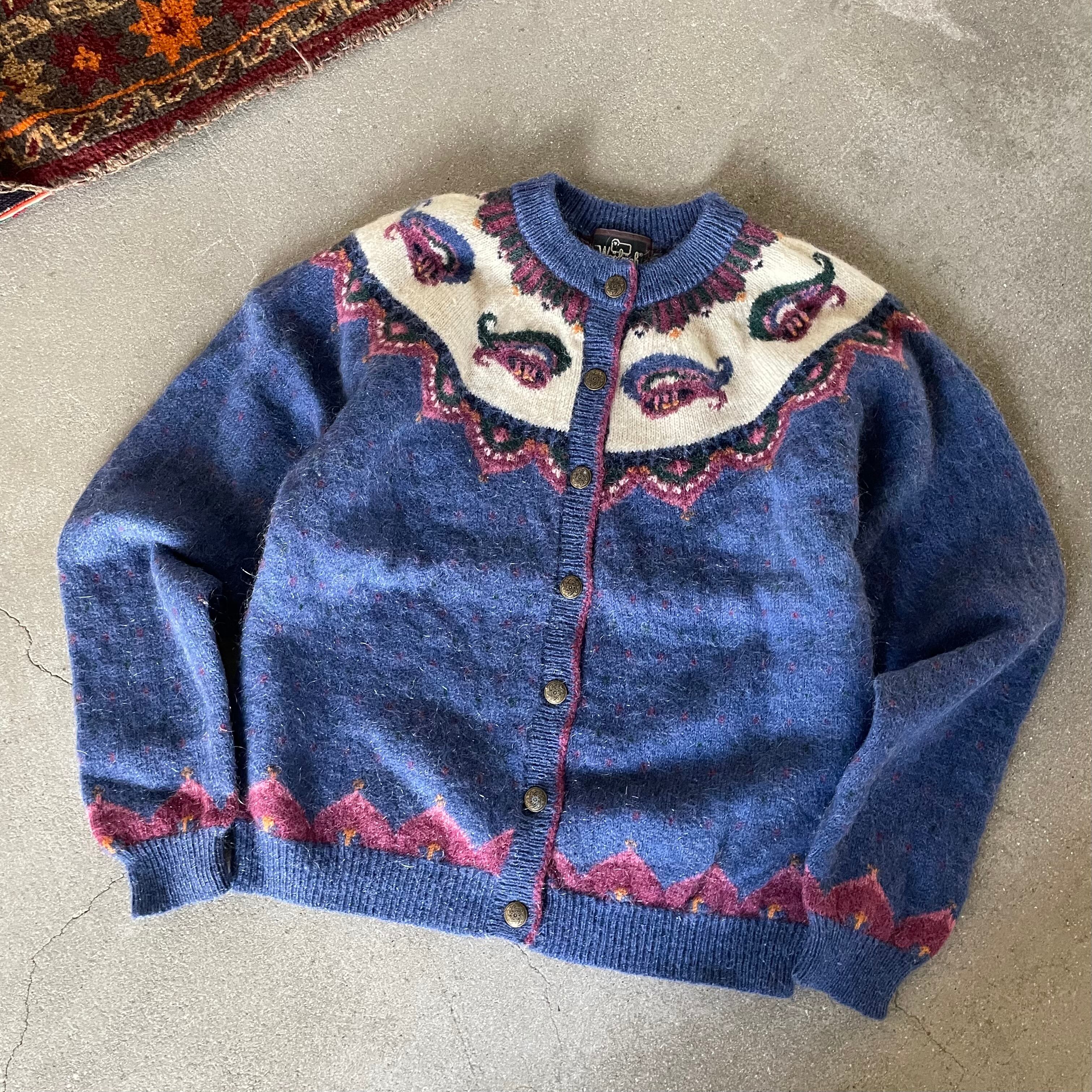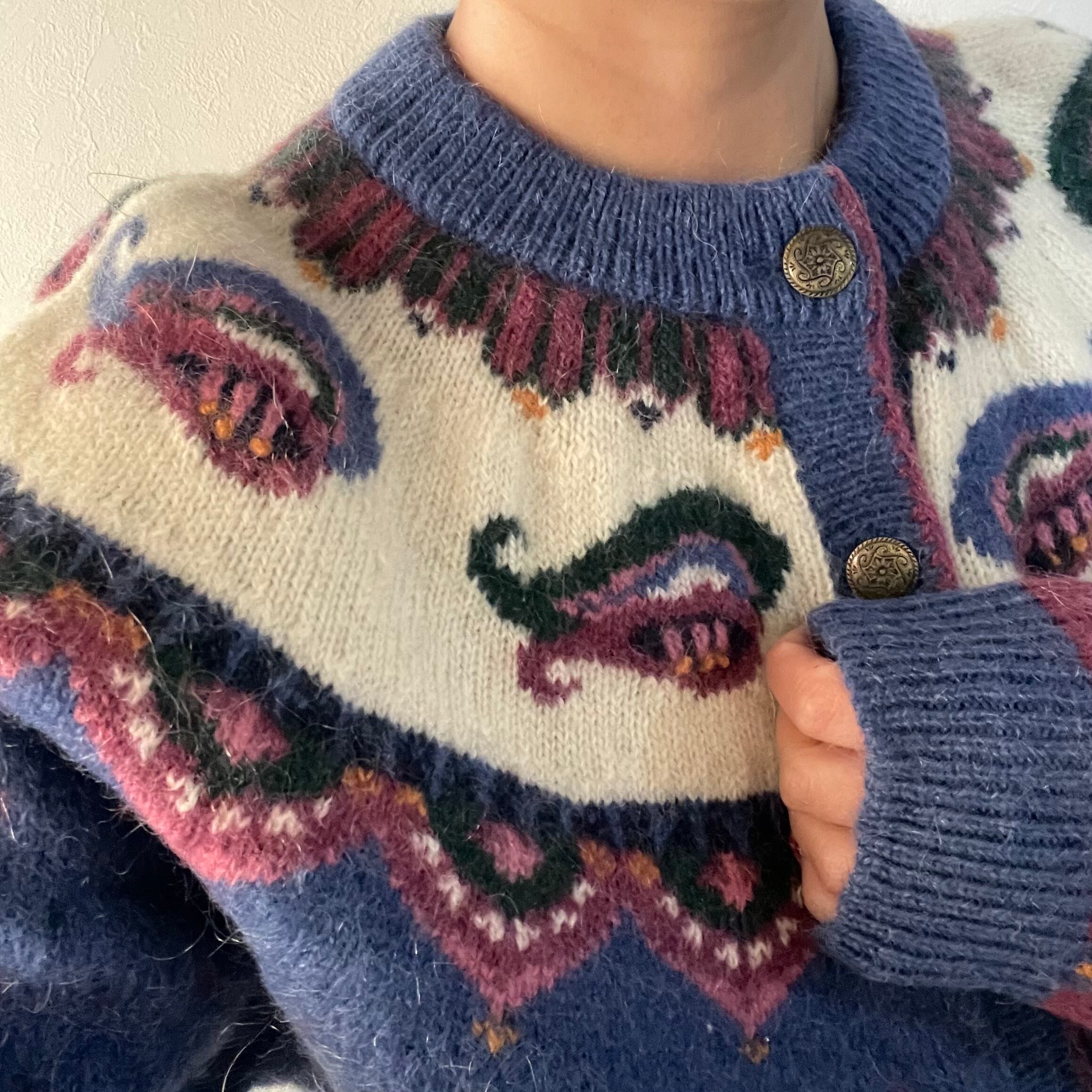 70s WOOL RICH mohea knit sweater ウールリッチ ペイズリー柄 ニットモヘア カーディガン