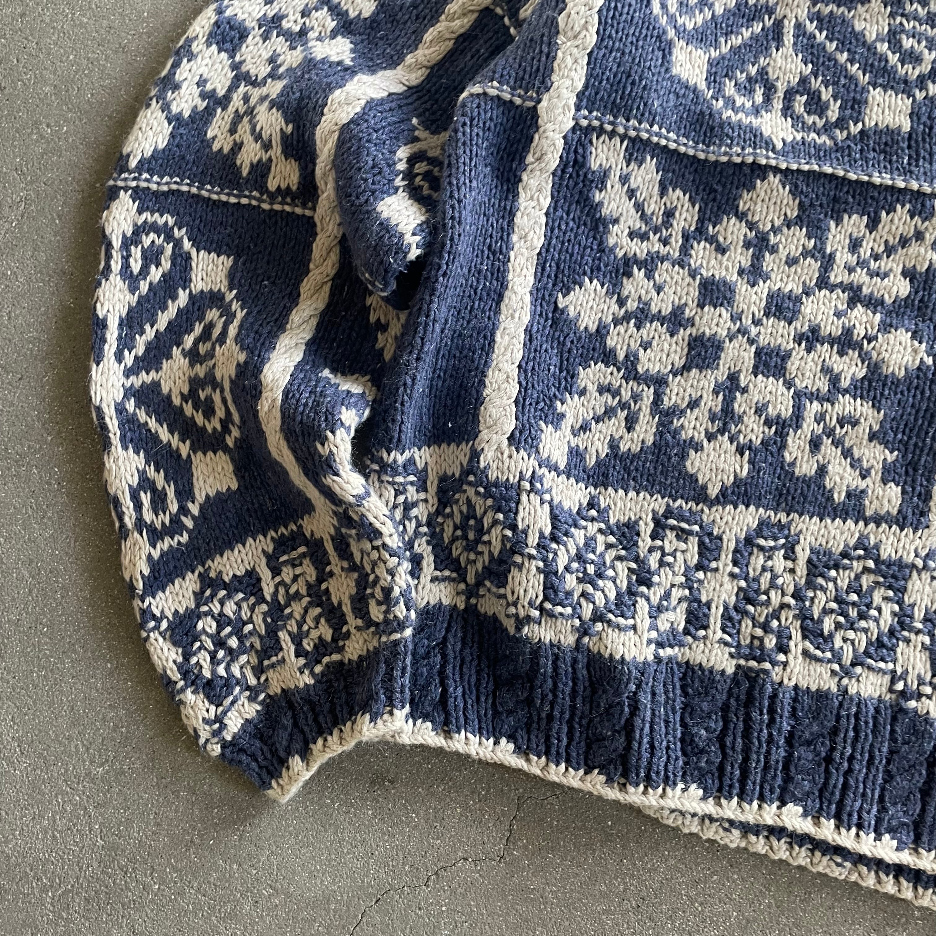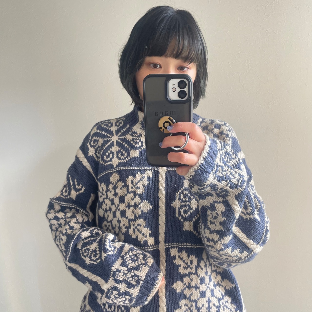 アメリカのメーカーがノルディックセーターを作る時によくある大きめのパネル切り替えのデザイン