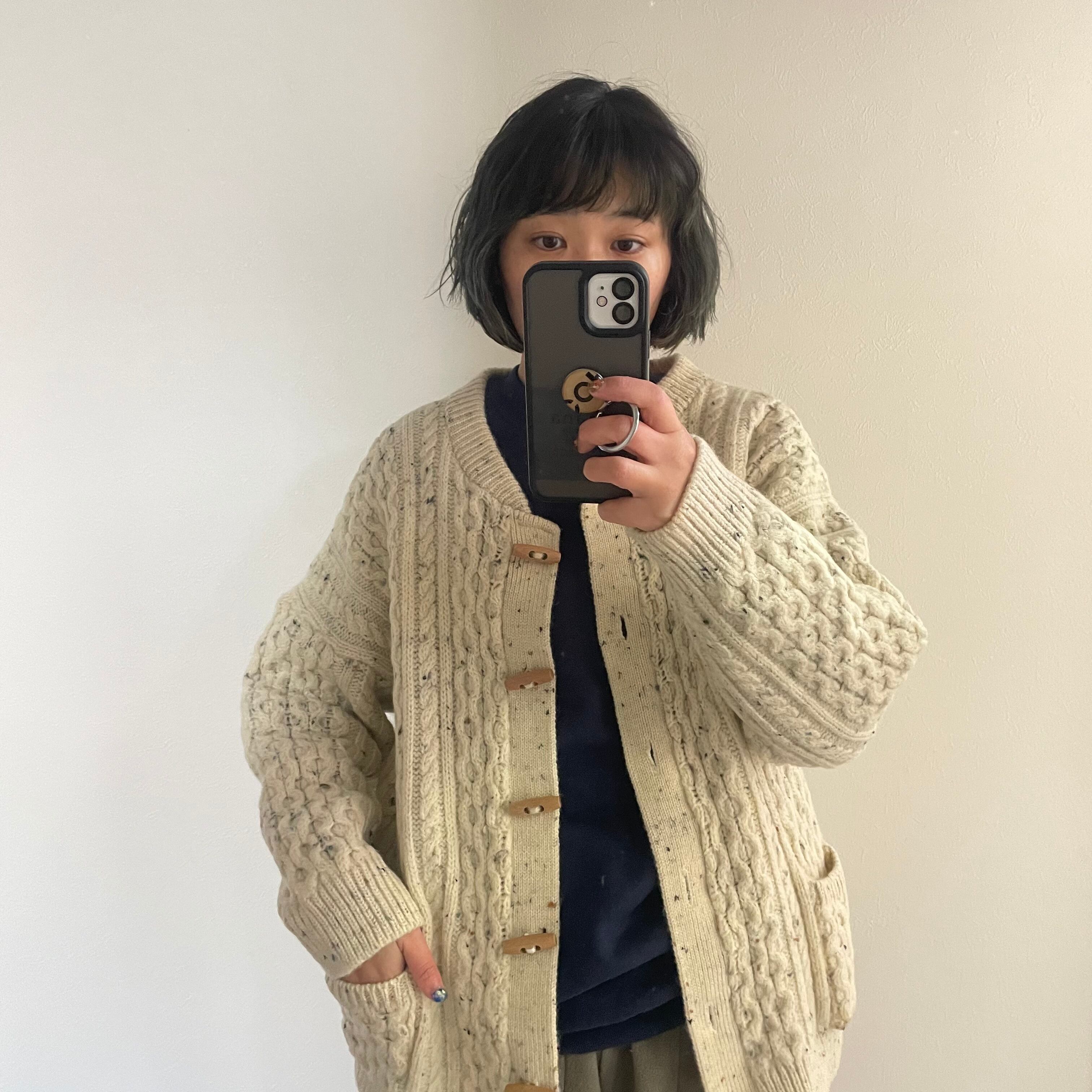 80s made in the UK aran knit cardigan トグルボタン アランニット カーディガン