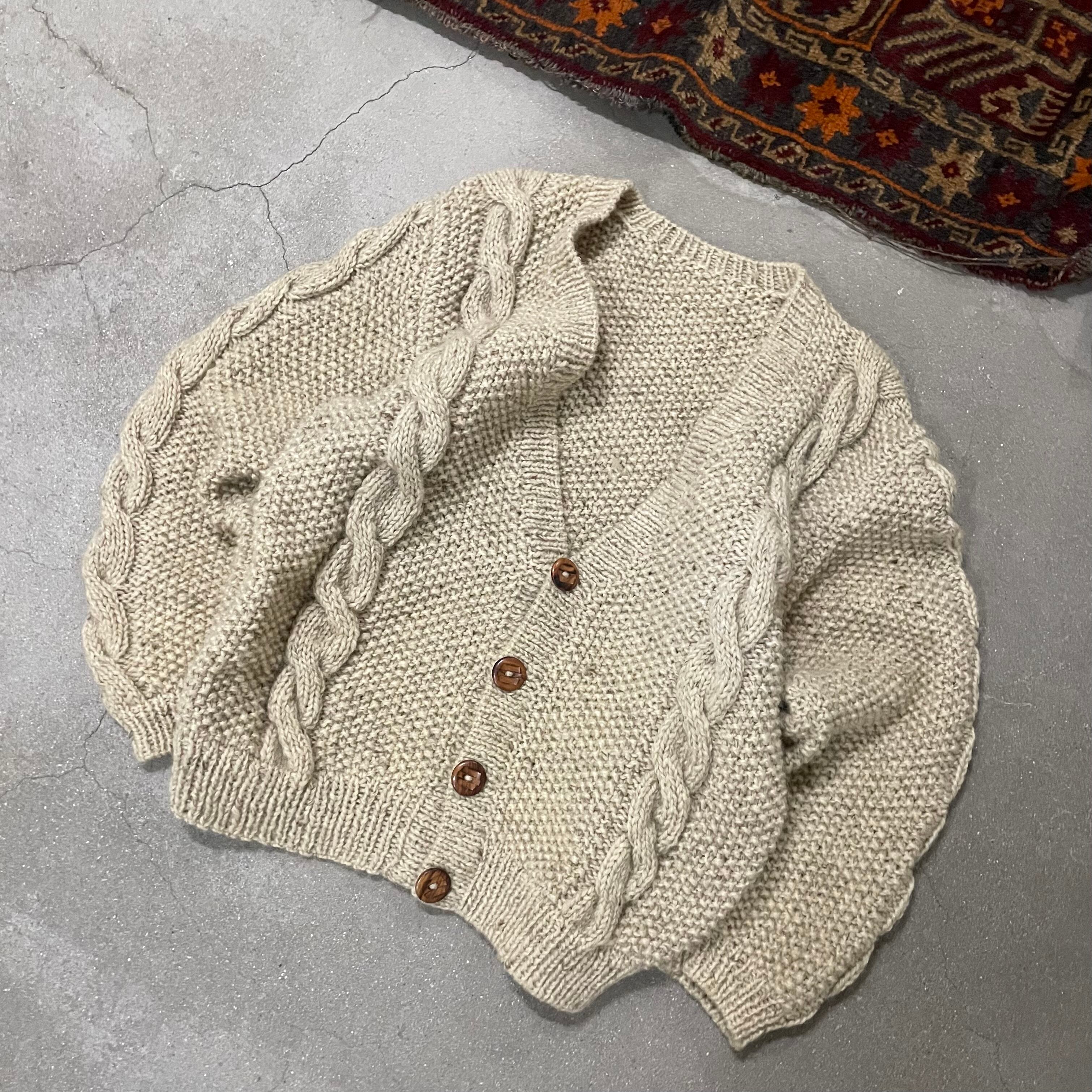 90s hand made wool knit cardigan ハンドニット アランセーター カーディガン