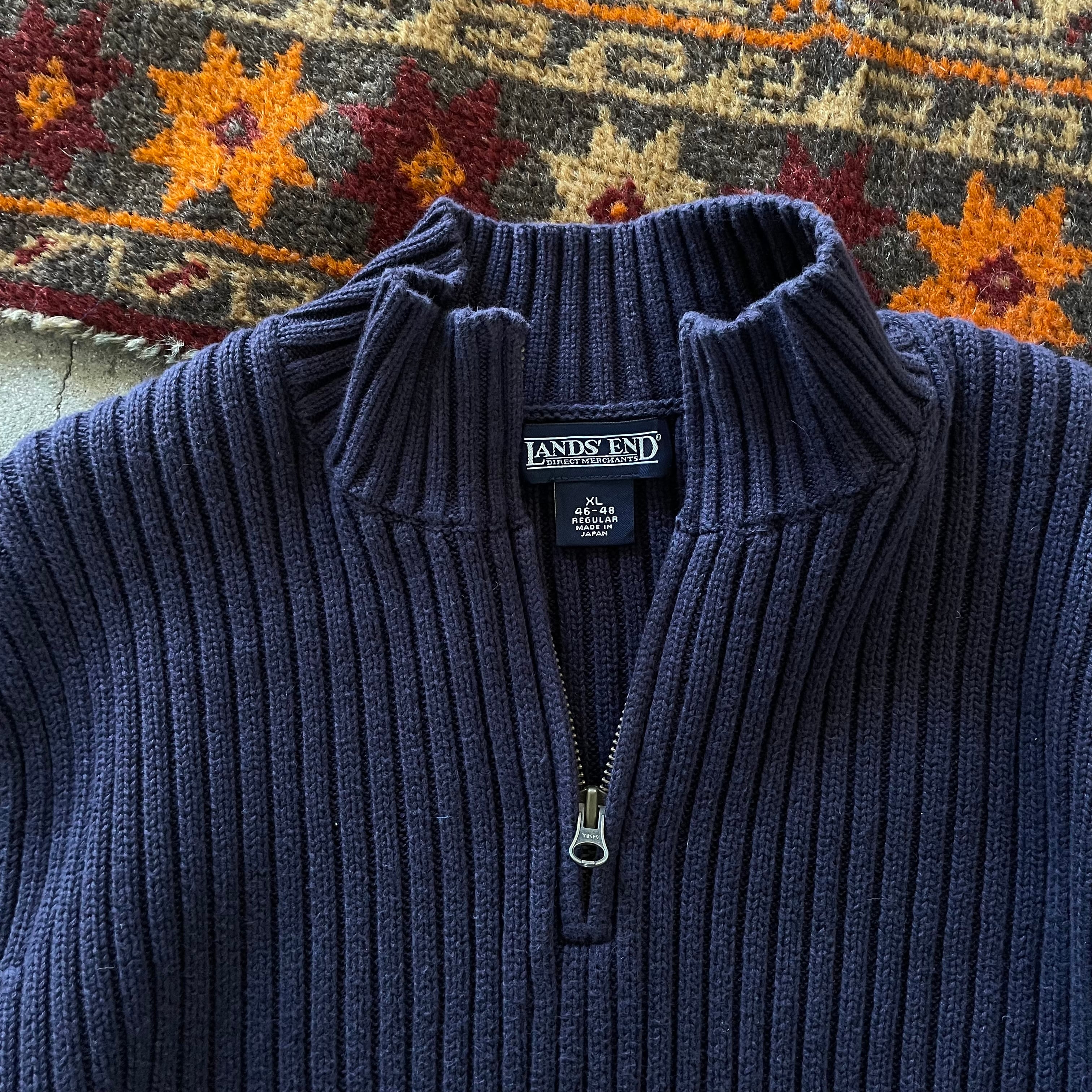 90s LANDS' END made in japan knit sweater ランズエンド リブニット セーター