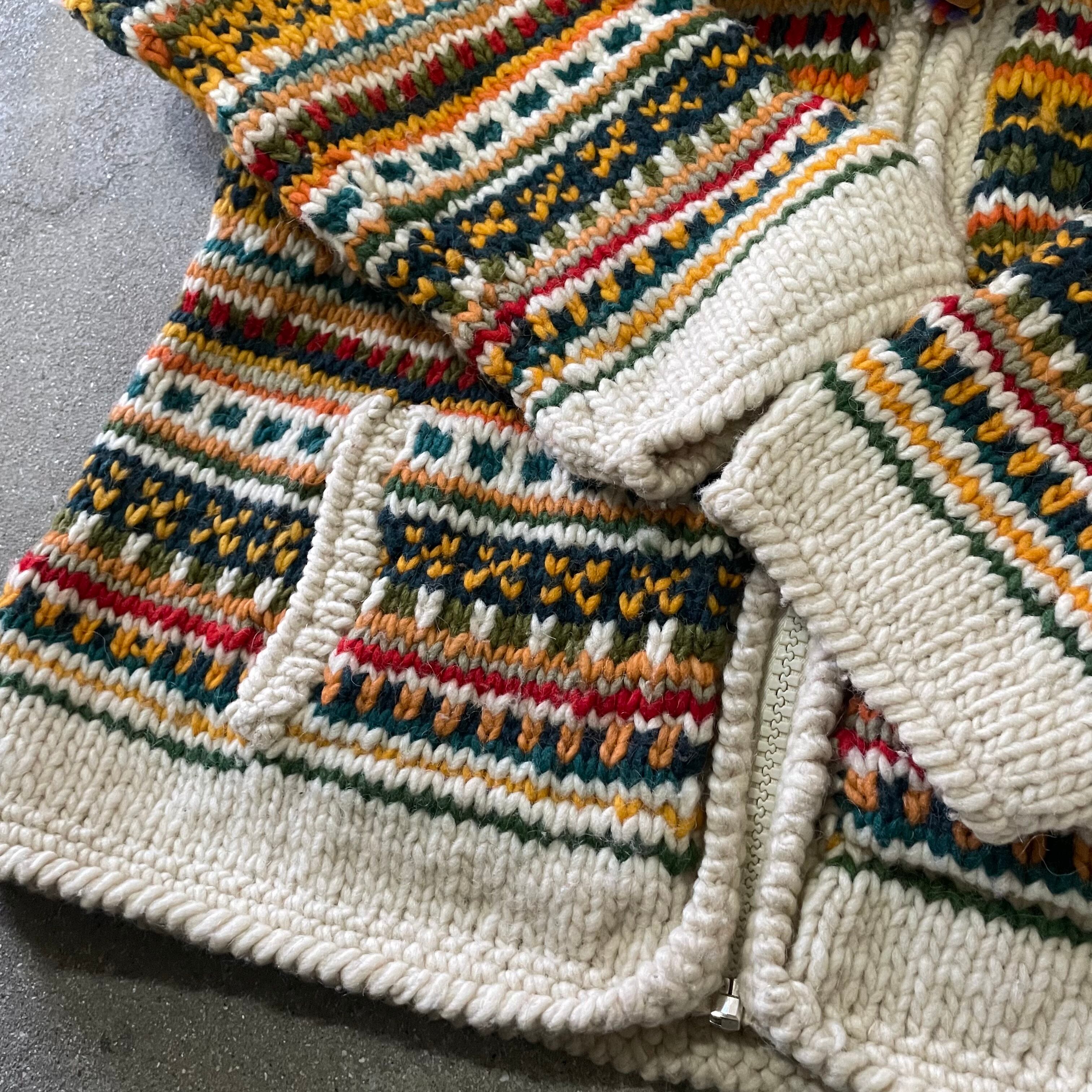 エクアドルニット ハンドメイド ニットカーディガン フーディ