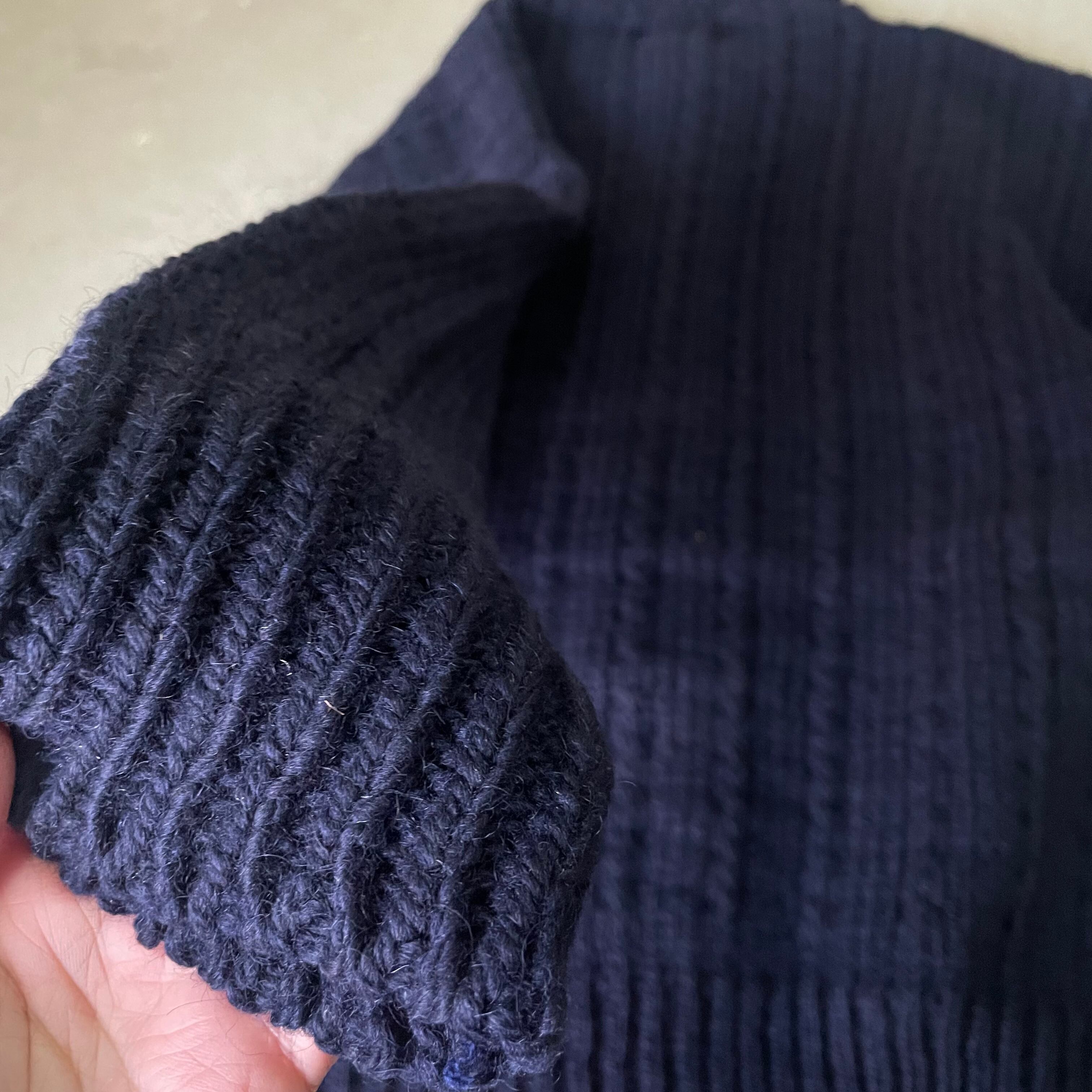 アラン、ガーンジーセーターともまた少し違うニュアンスのケーブル編みです