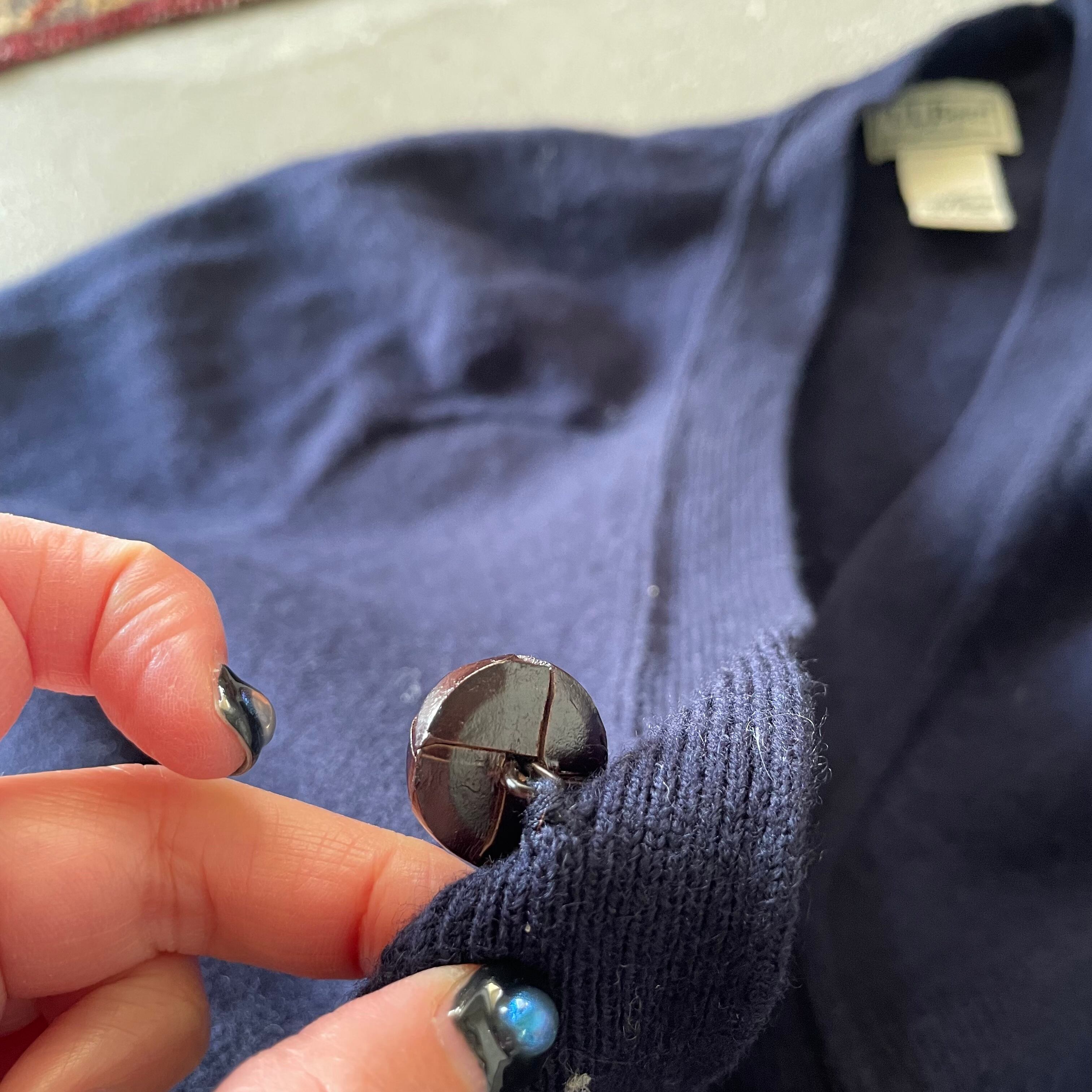 L.L.Bean lamb's wool knit cardigan エルエルビーン ラムウール ニットカーディガン 本革くるみボタン