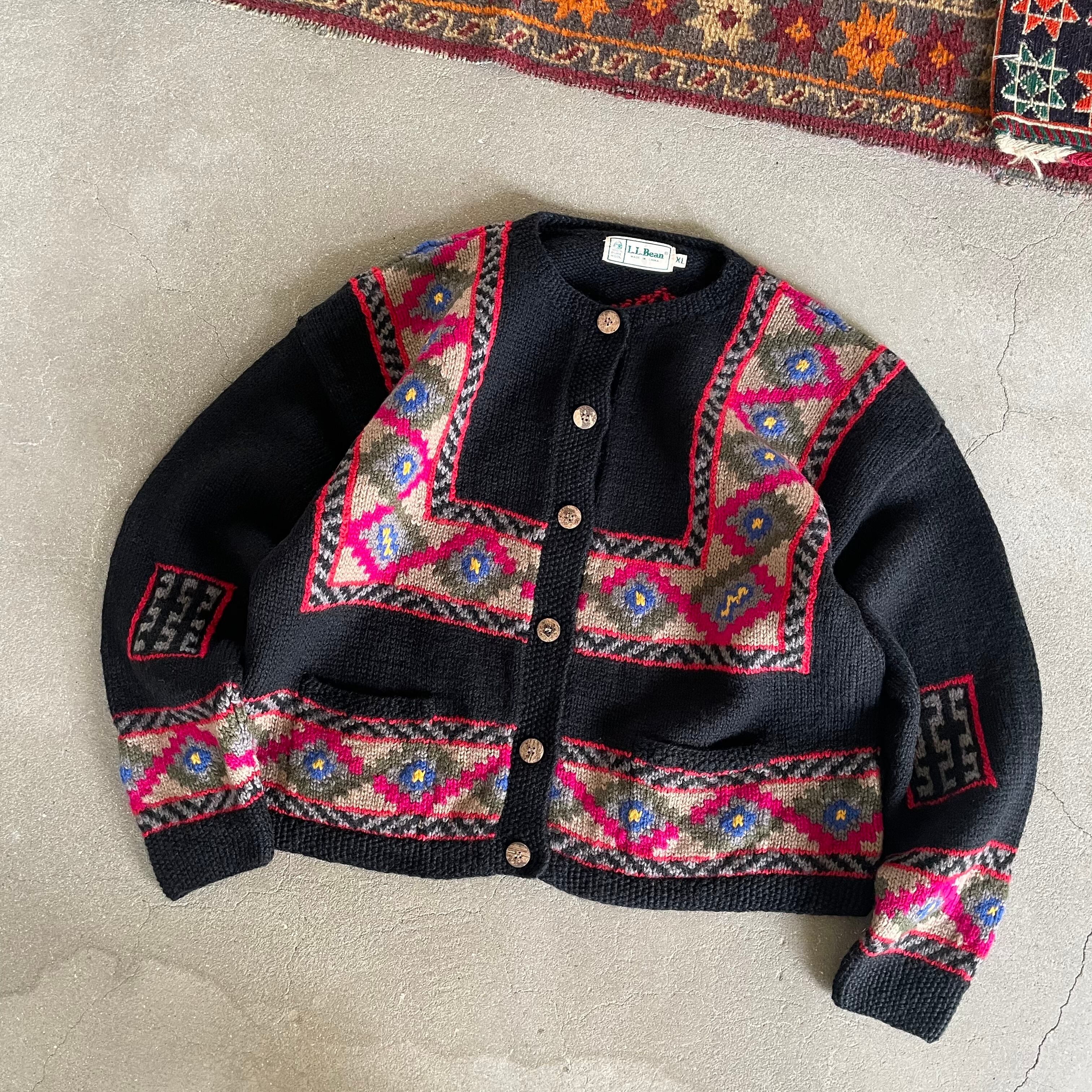 80s L.L.Bean native pattern wool knit cardigan エルエルビーン ネイティブ柄 ニット カーディガン