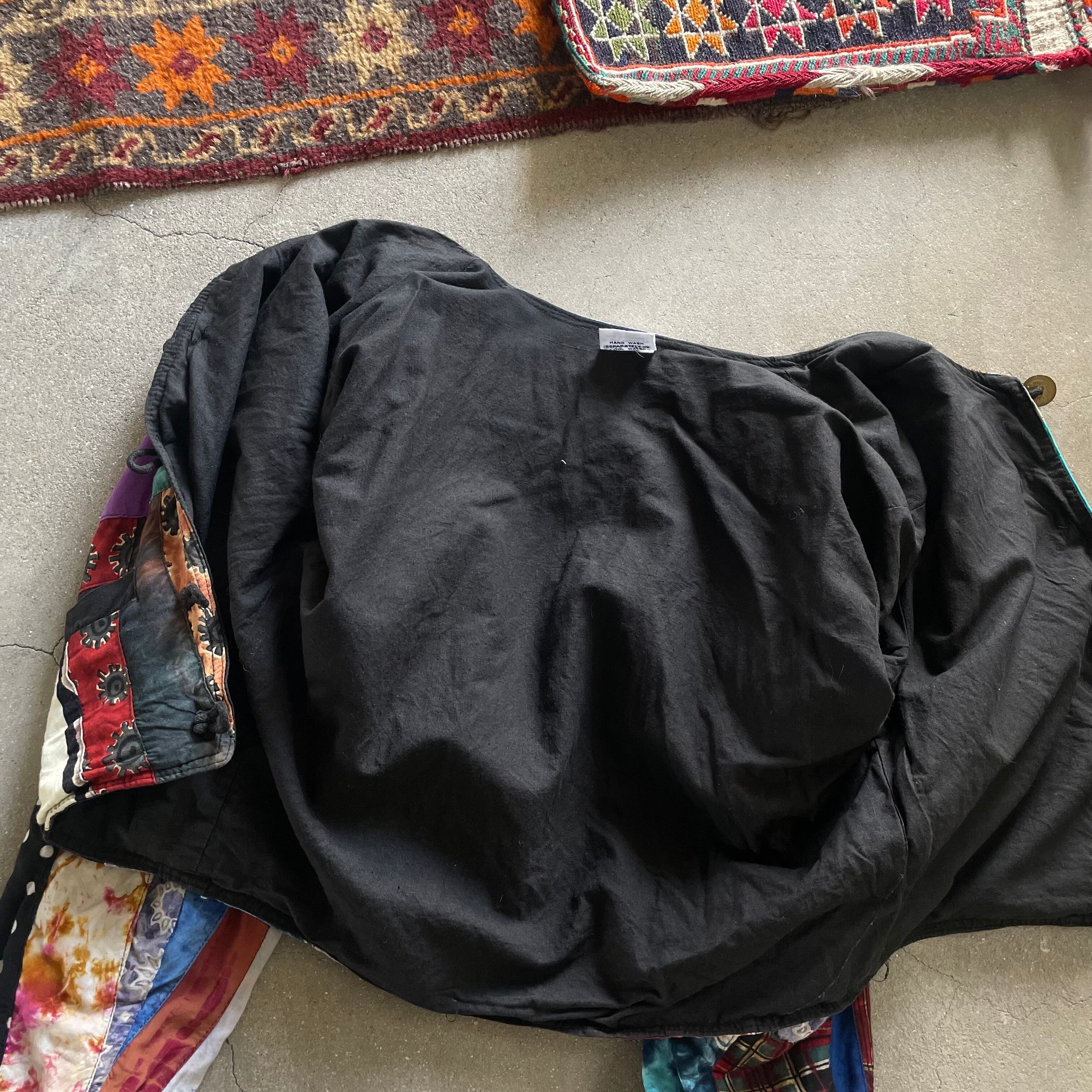 90s rayon patchwork short jacket パッチワーク ショート丈 コインボタン ノーカラージャケット